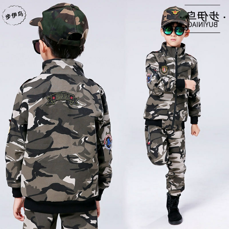 步伊鸟 Детский камуфляжный демисезонный костюм мальчика цветочника, пуховик, комплект для мальчиков, 2020, увеличенная толщина