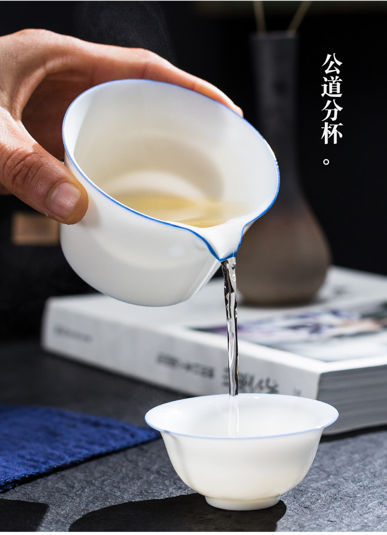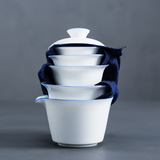 Dehua White Fophain Blue Edge Bow
