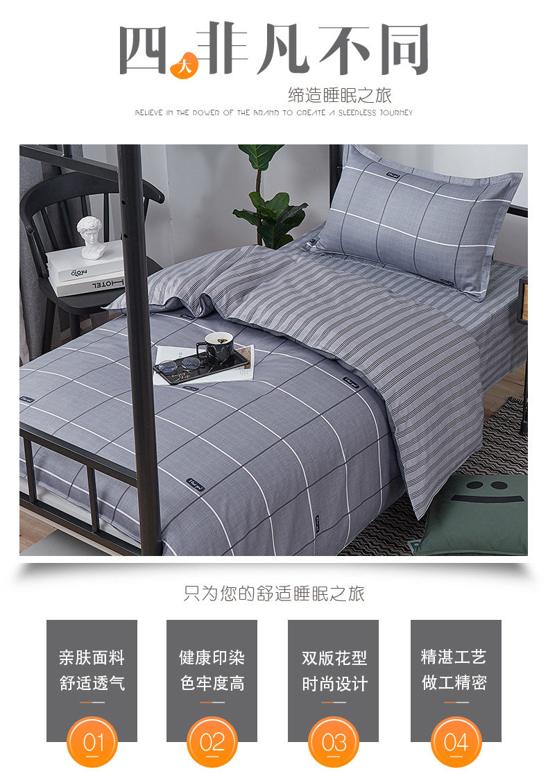 Хлопковый комплект для школьников и студентов, пододеяльник, простыня, покрывало, 3 предмета