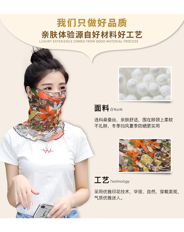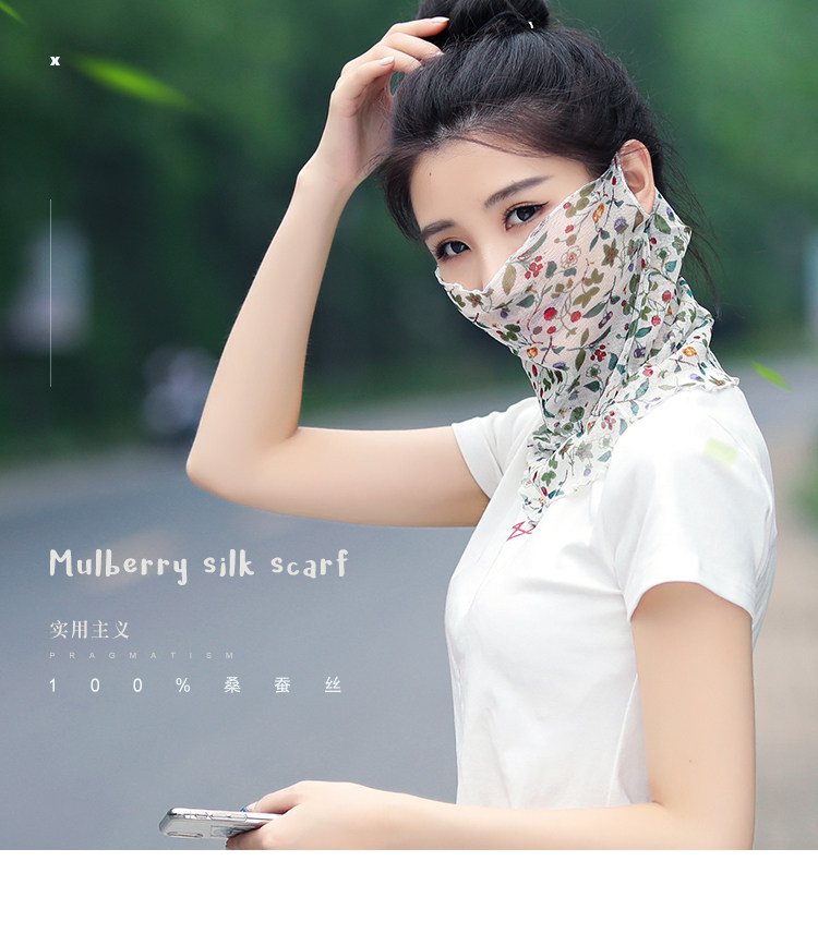 Шелковая маска, вуаль, тонкий шарф для лица, с защитой шеи, защита от солнца