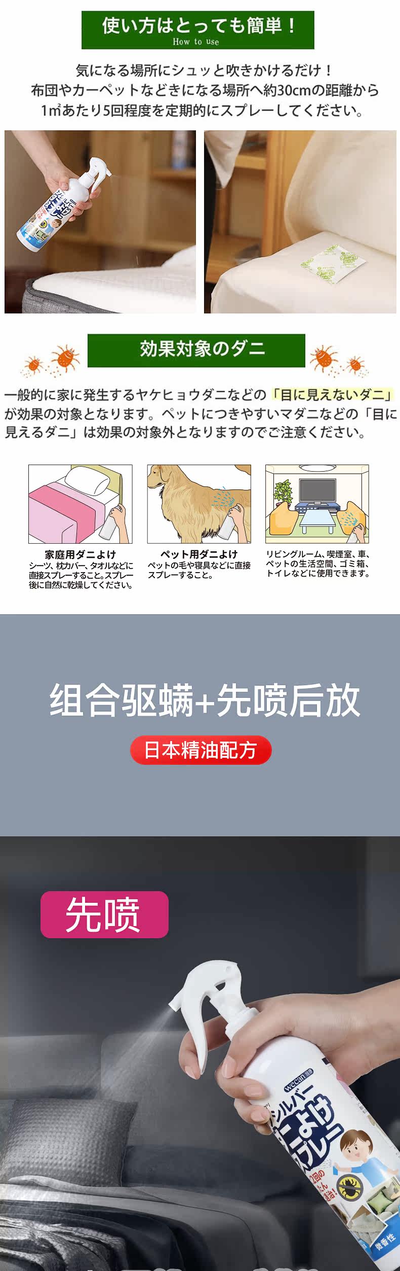 Японская снятие клещей с клещами. Пользовательский кровать использование домохозяйства спрей для удаления спрей для спрея.