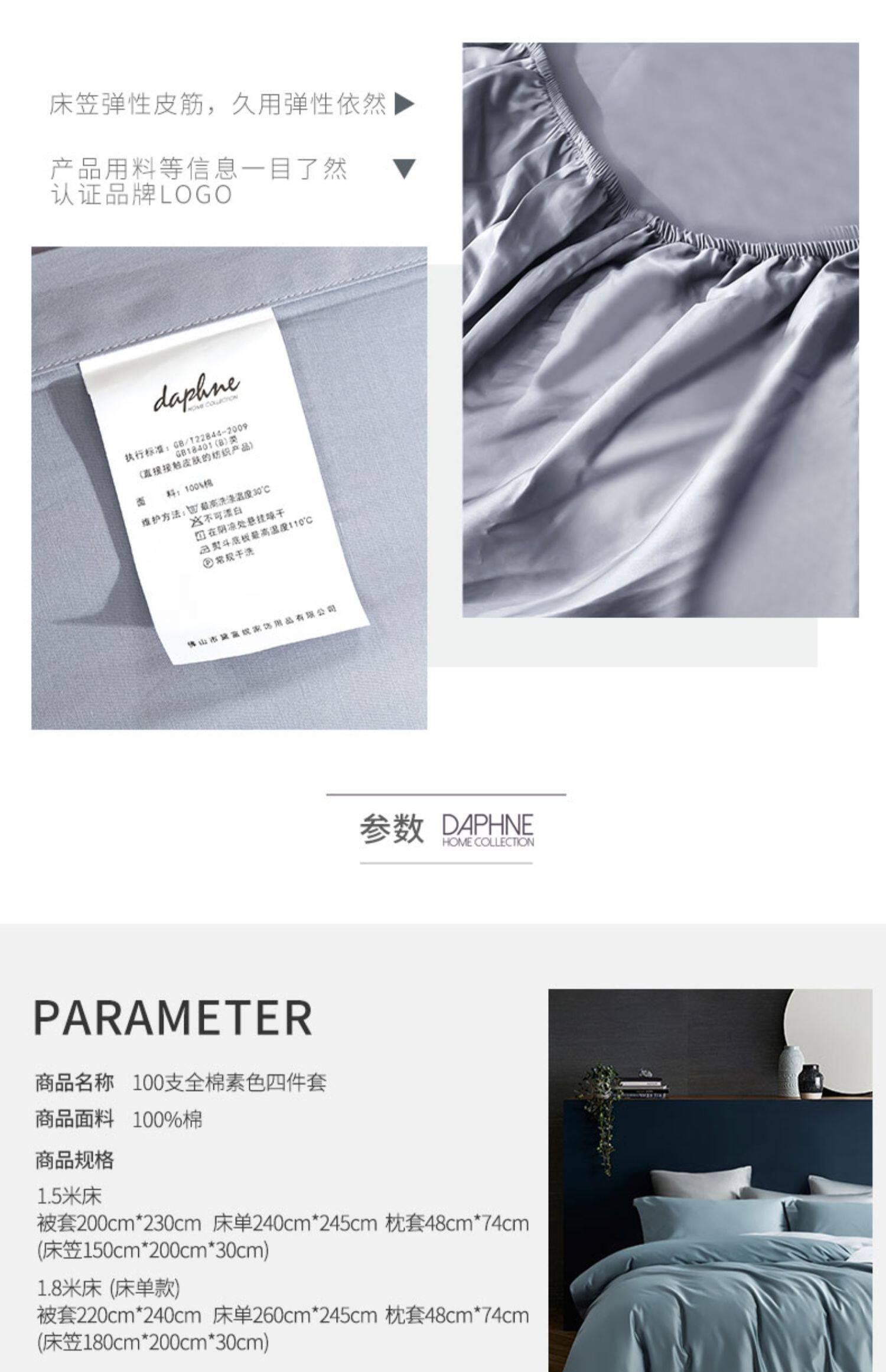 黛富妮 Хлопковый комплект, кровать, простыня, 100 шт, 4 предмета, простой и элегантный дизайн, 1.8м