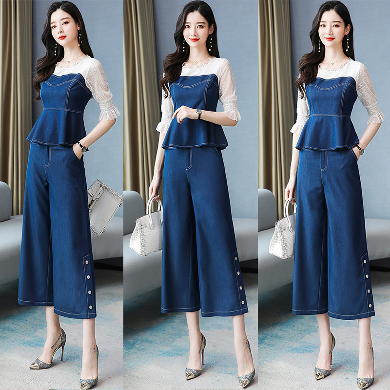 Кружевные джинсовые штаны, летний модный комплект, в западном стиле