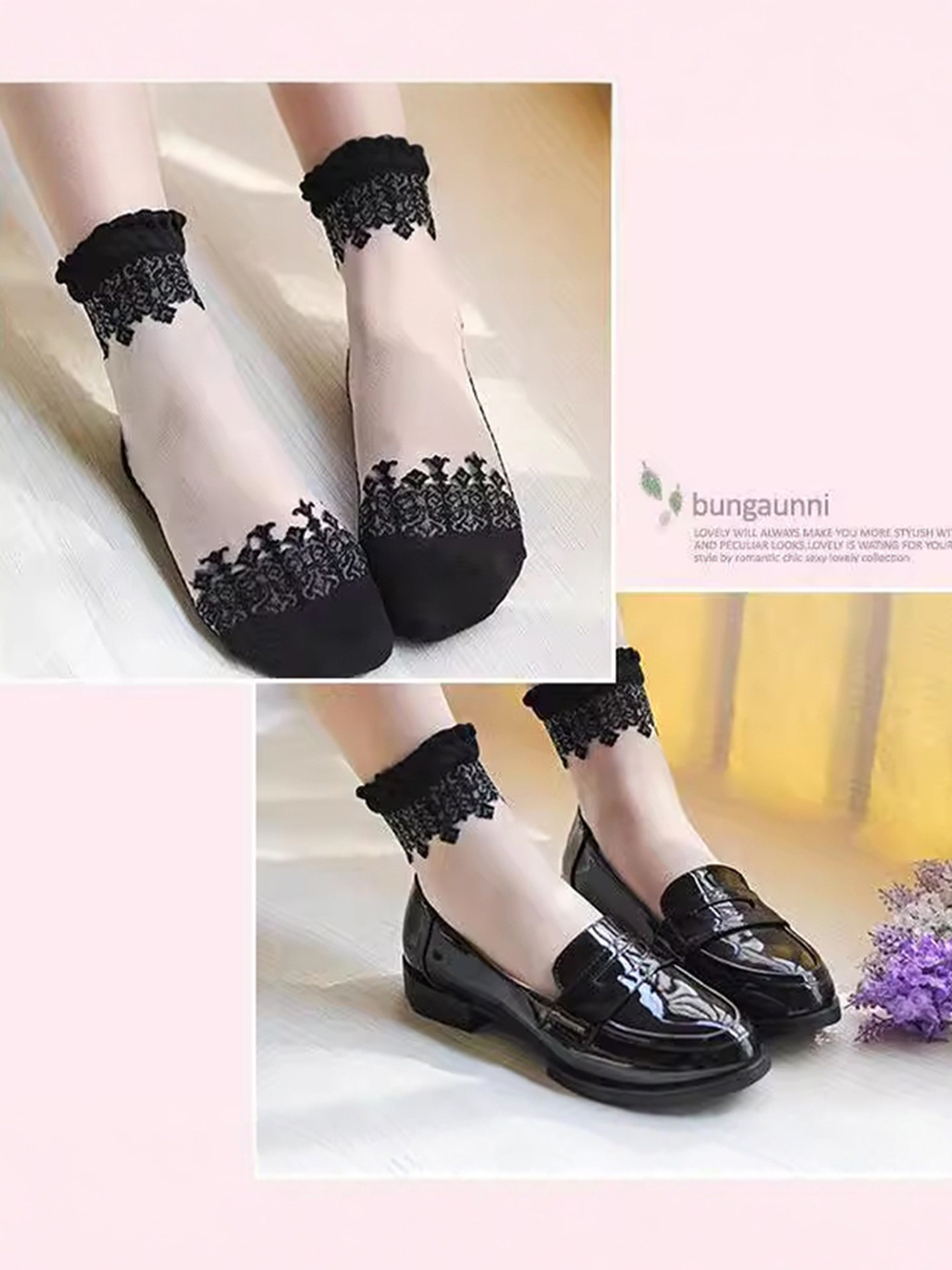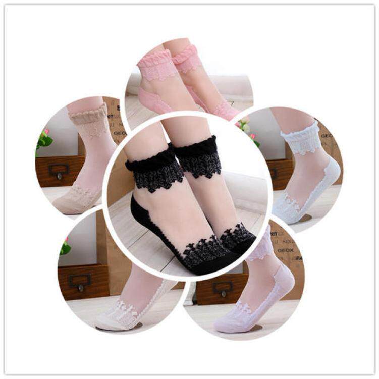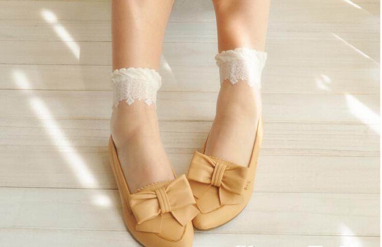Японские осенние кружевные носки, стеклянные колготки, кружевное платье, средней длины