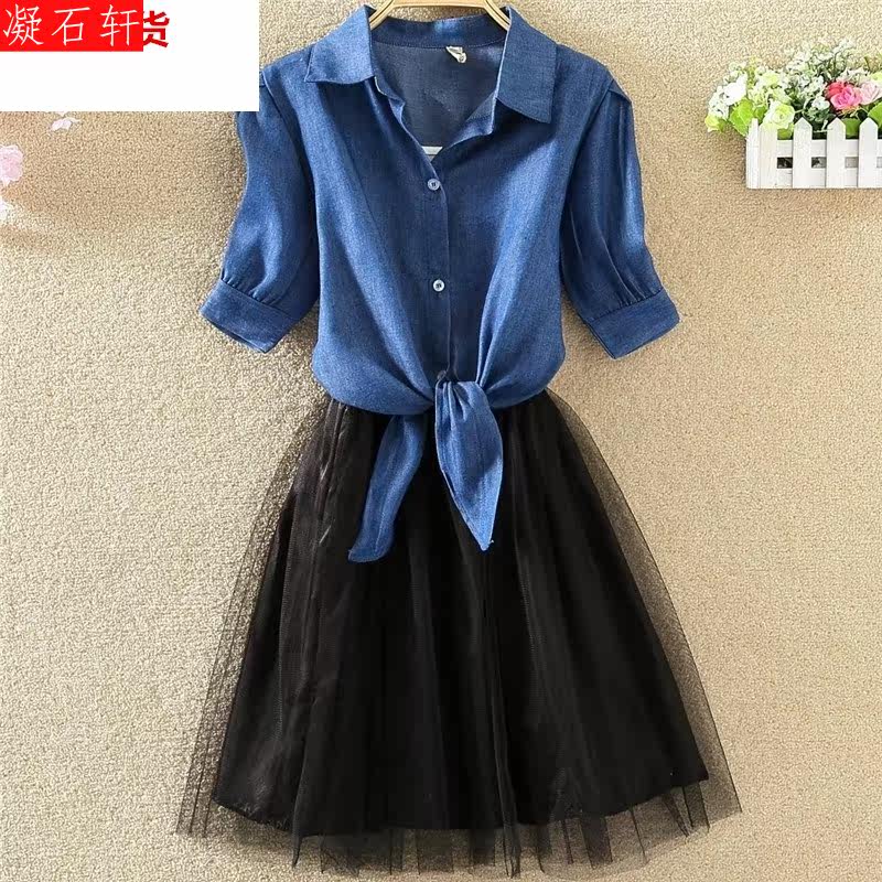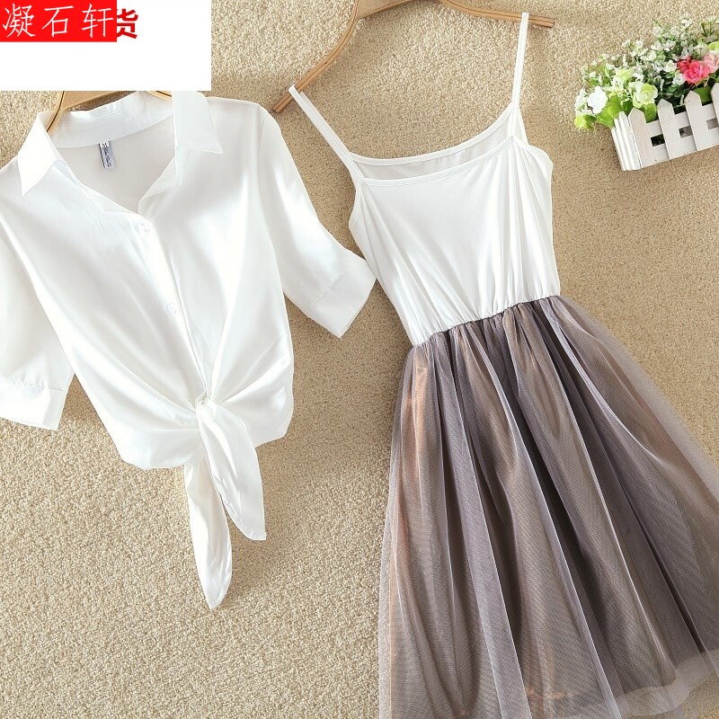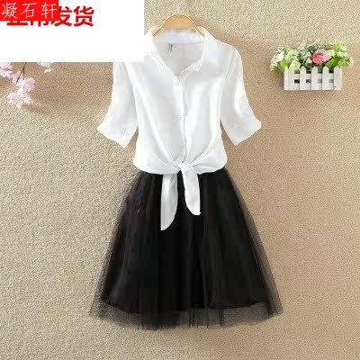 Летняя длинная кружевная юбка, шифоновый лонгслив, рубашка для отдыха, комплект, платье, 2020, средней длины, городской стиль, юбка-пачка