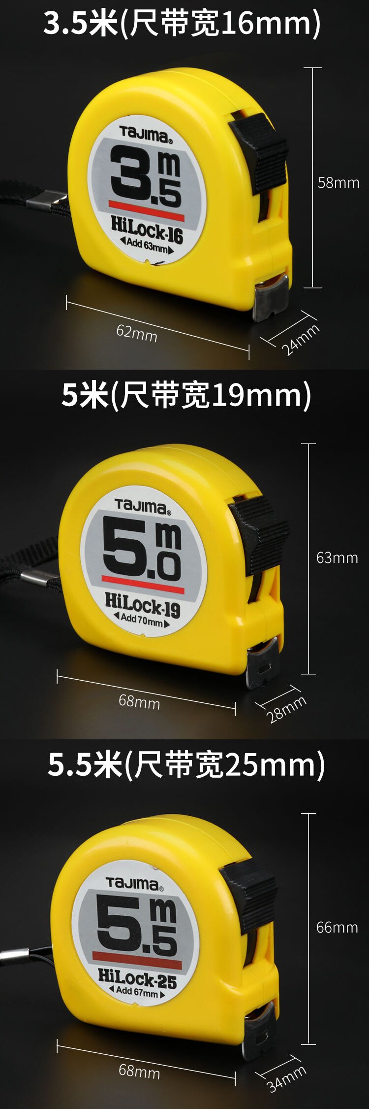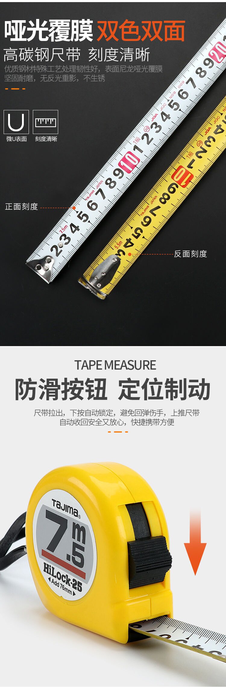 Матовая износостойкая двусторонная линейка, 5м, 3.5м, 5.5м, 7.5м
