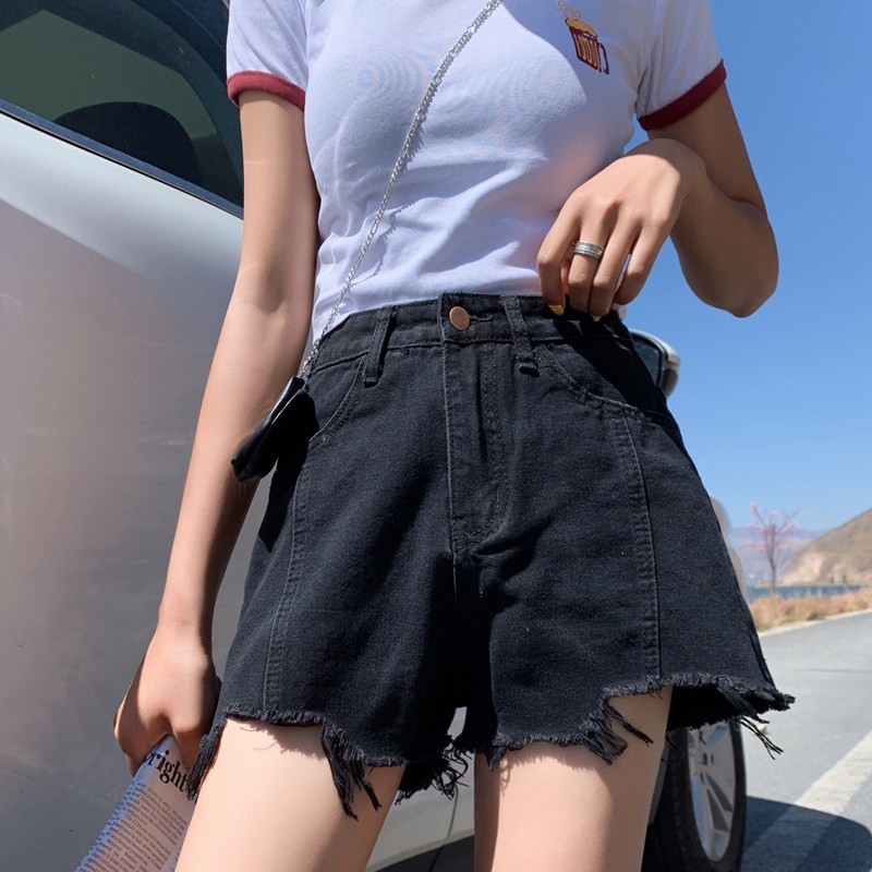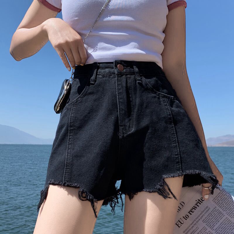 Летняя черная джинсовая юбка, шорты, брендовые штаны, коллекция 2022, большой размер, популярно в интернете, высокая талия, свободный крой, А-силуэт