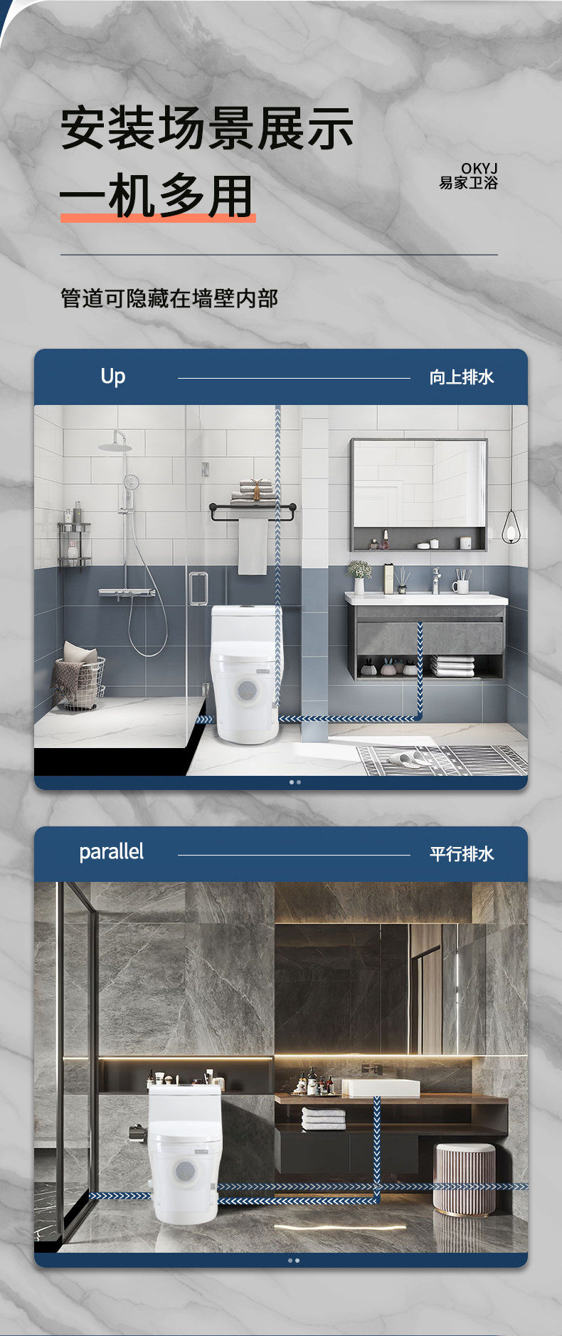 Okyj Электрический электрический характер туалет скрывает стенные сточные воды.