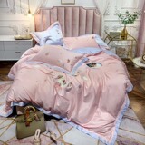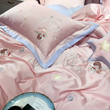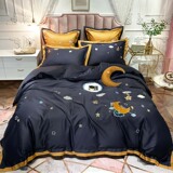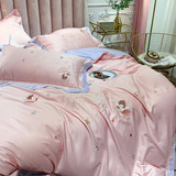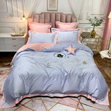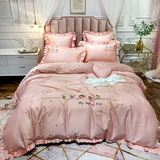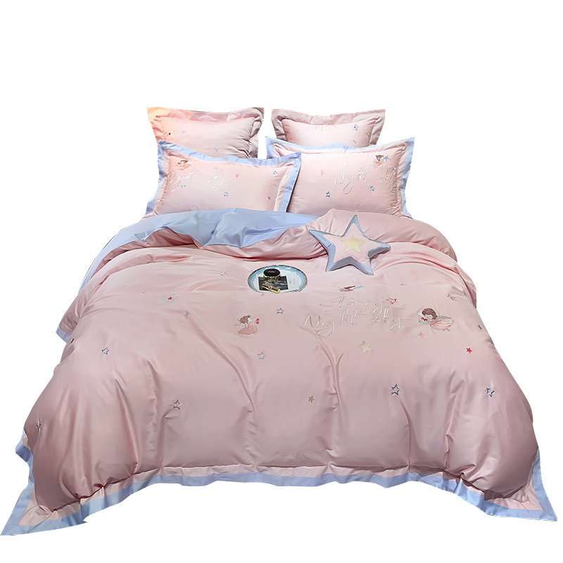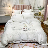 Хлопковый комплект, пододеяльник, простыня, покрывало, 60 шт, с вышивкой, 4 предмета