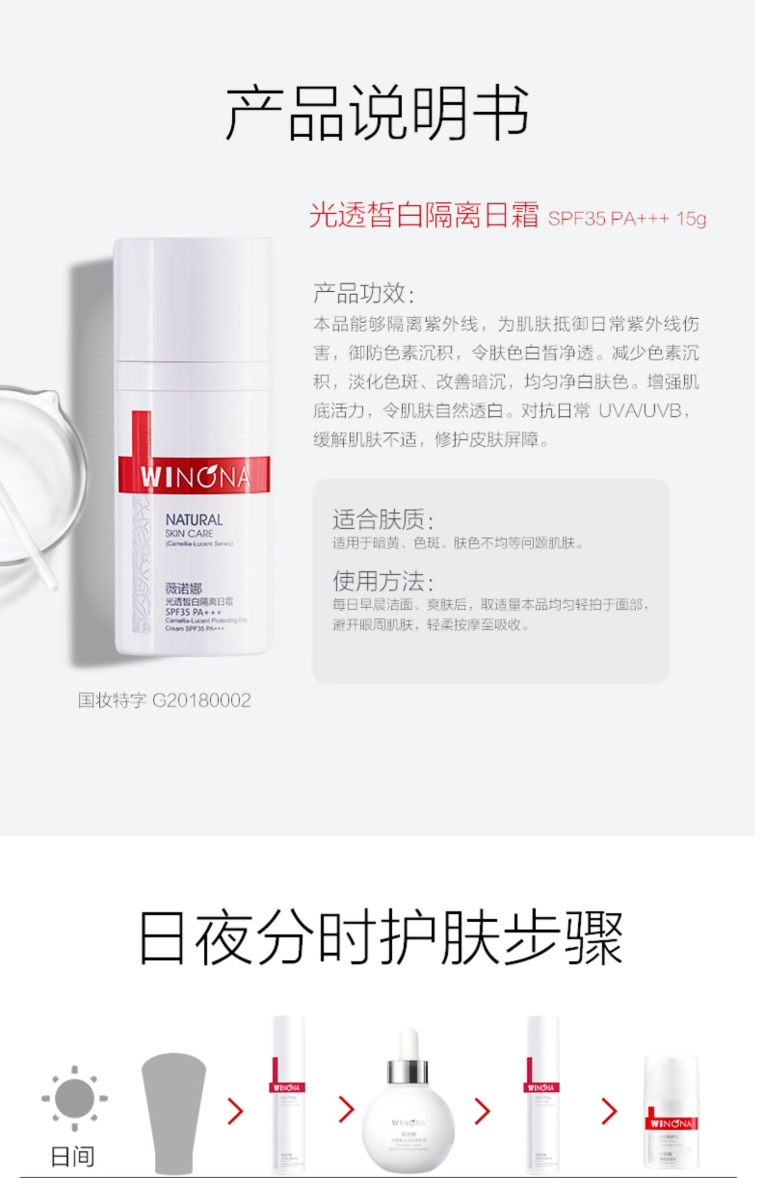 [Эффективный период 1,3-1,6 года] Вайнона легкий и белый день изоляции крем 15G SPF35PA +++