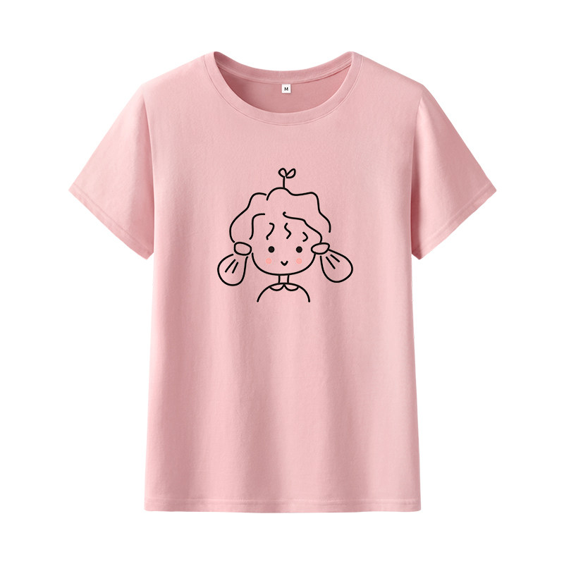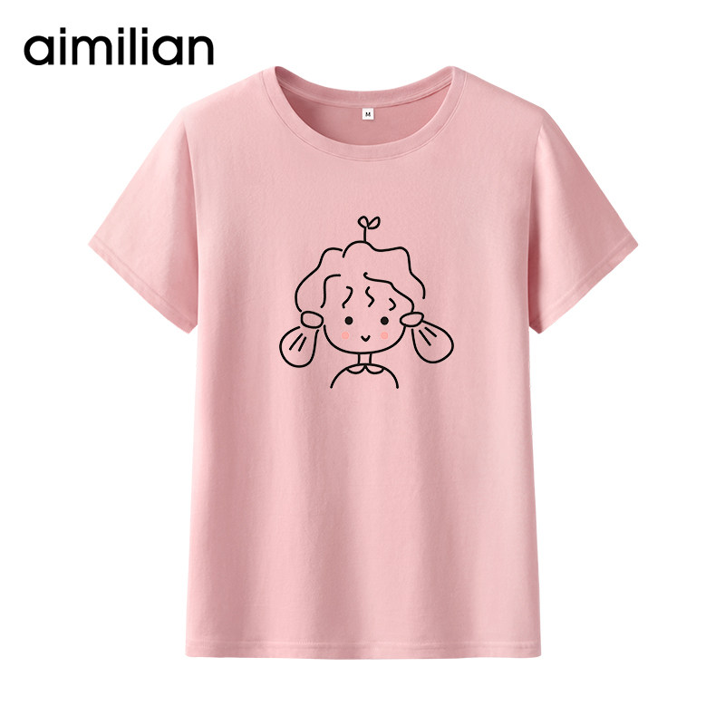 艾米恋 Розовая хлопковая летняя футболка с коротким рукавом, мультяшная парная одежда с круглым воротником для влюбленных, 2020 года, оверсайз