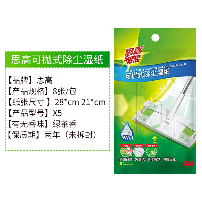 3M Sigo бросает пыльную пыльную бумагу, швабля, замена статического удаления пыли, антибактериальной и грязной, влажной бумаги 8 страниц*1 упаковка