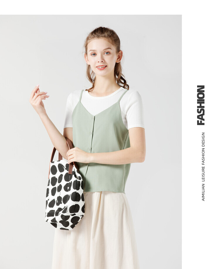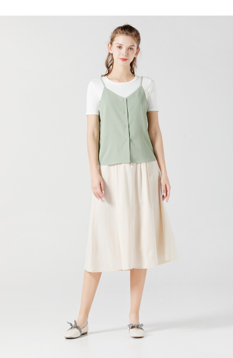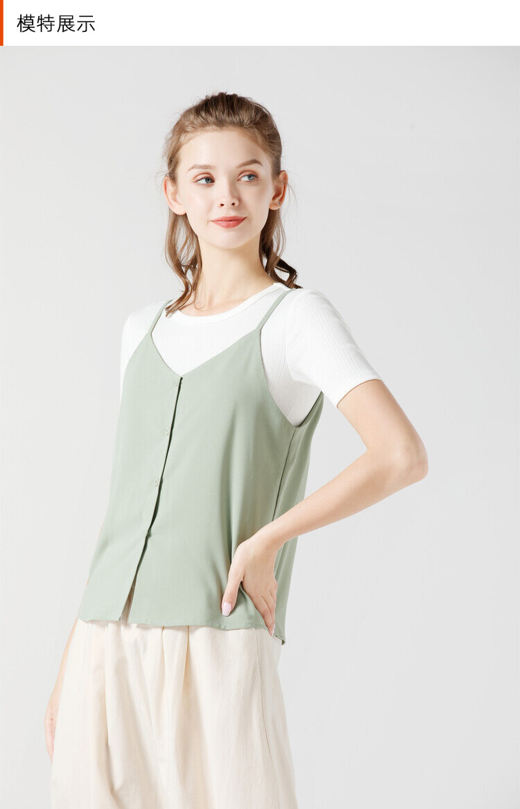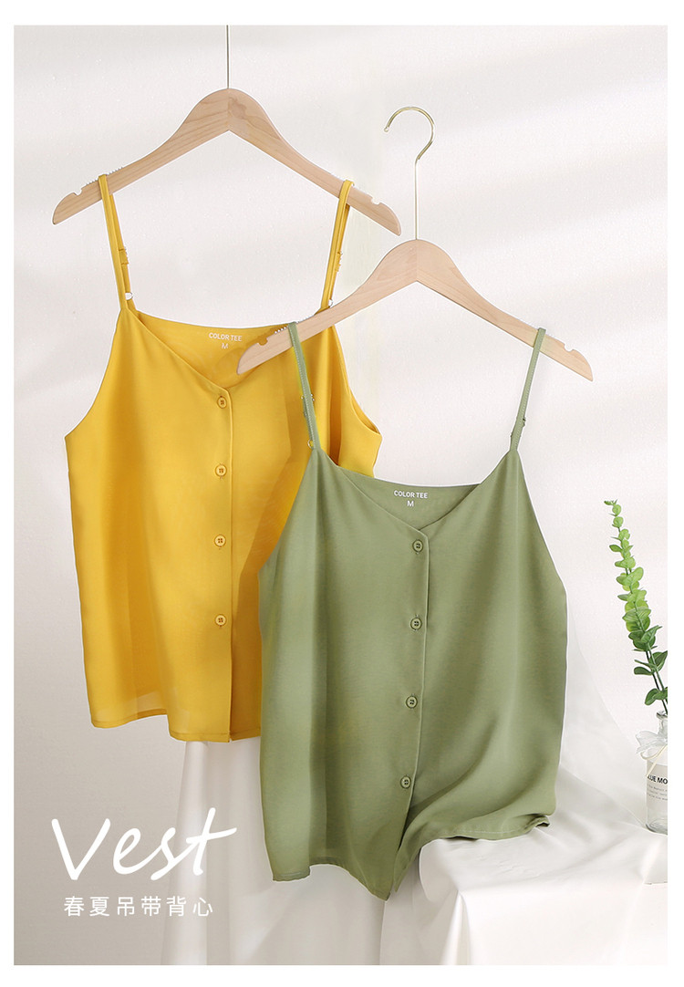 艾米恋 Шифоновая зеленая базовая приятная телу майка топ без рукавов, свободный крой, V-образный вырез
