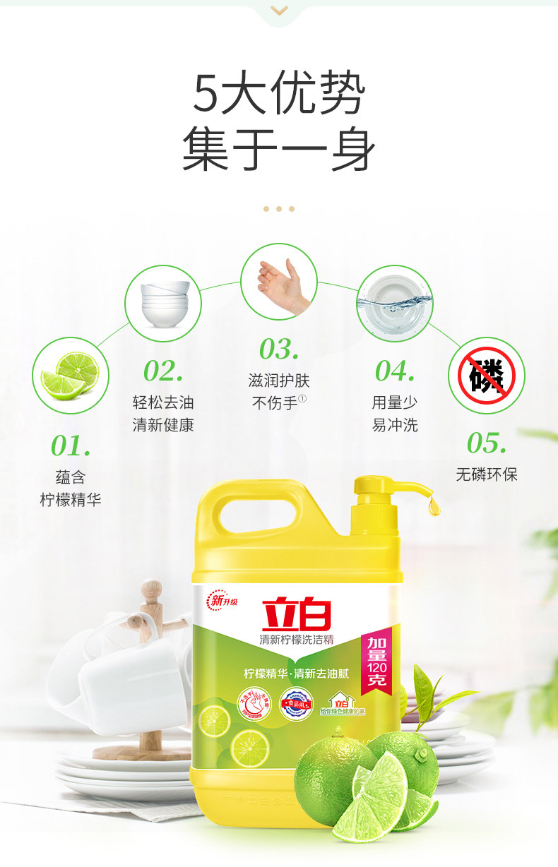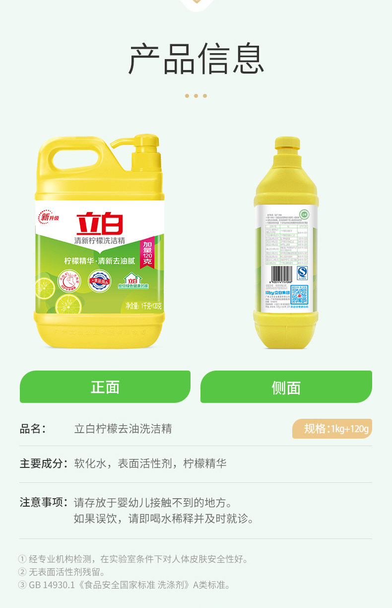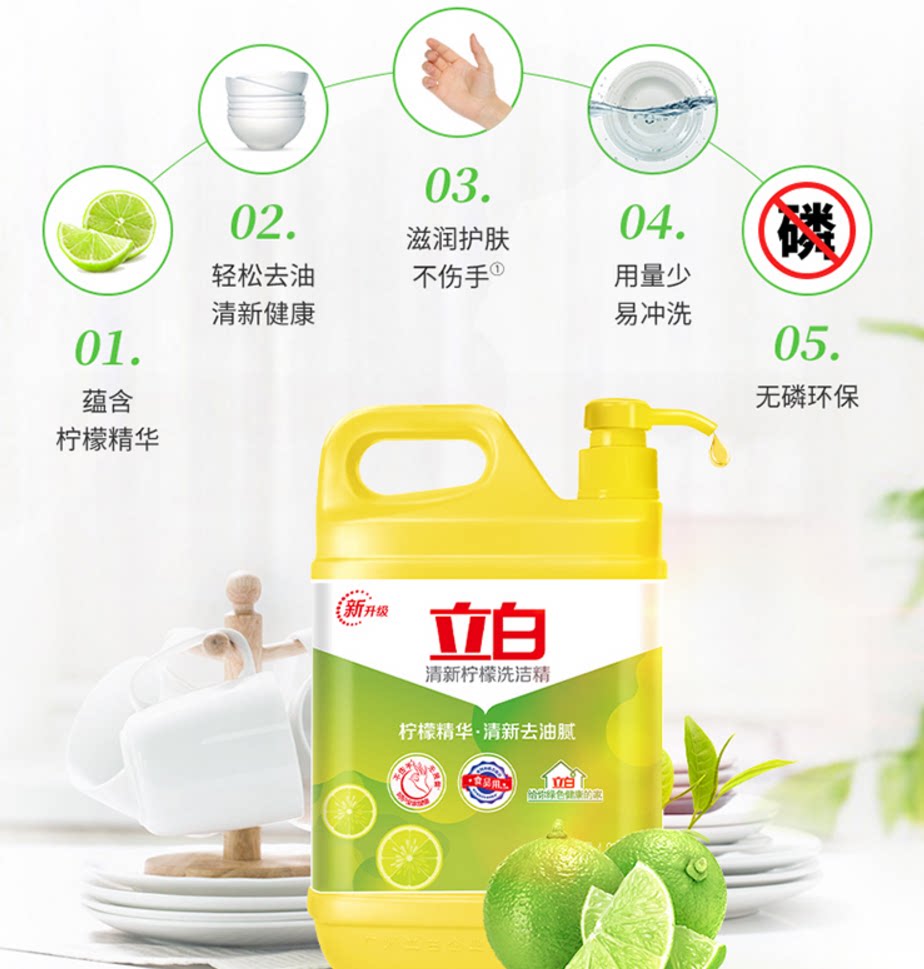 立白 Жидкость для мытья посуды с лимоном 1,12 кг*2 барреля домашних фруктов и овощных моющих средств.