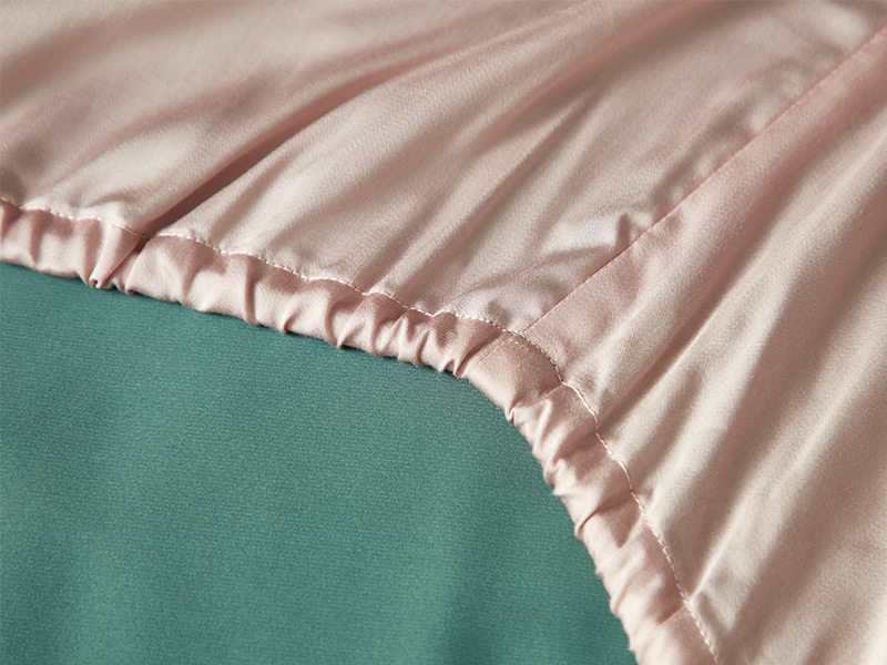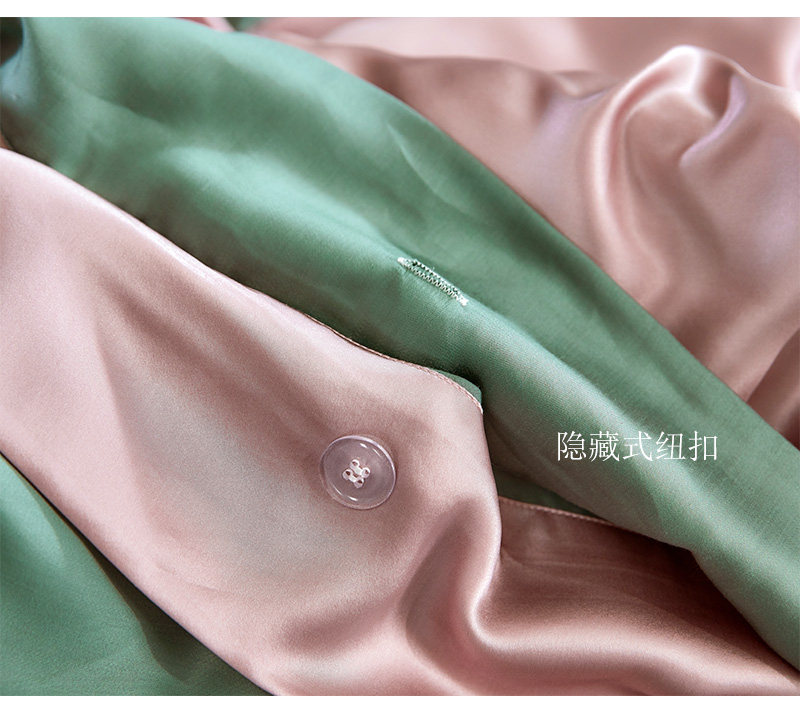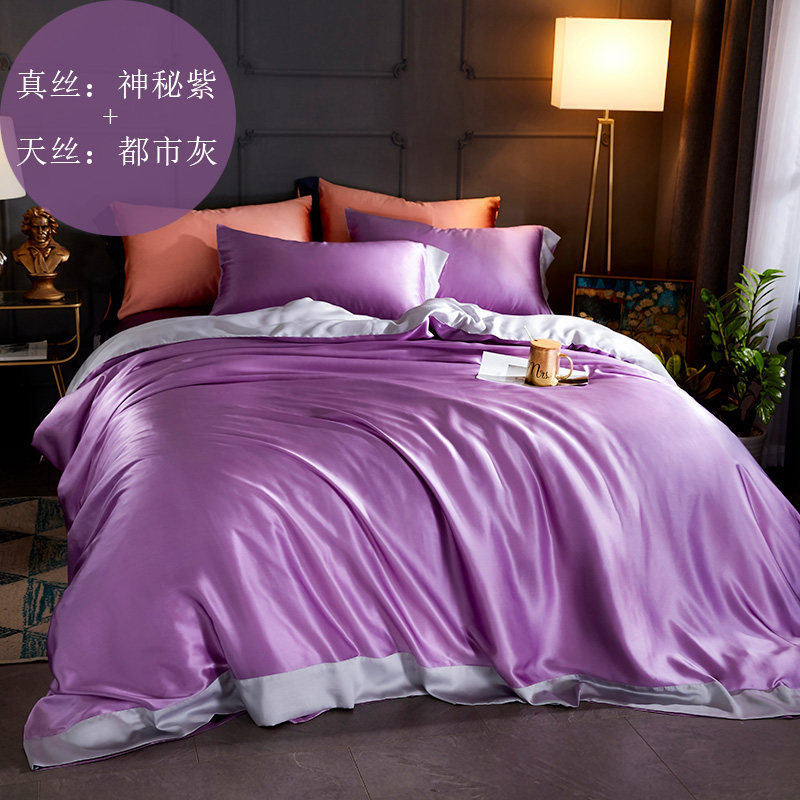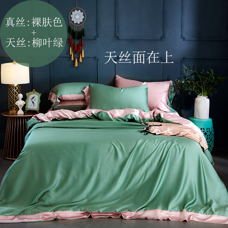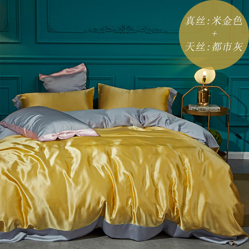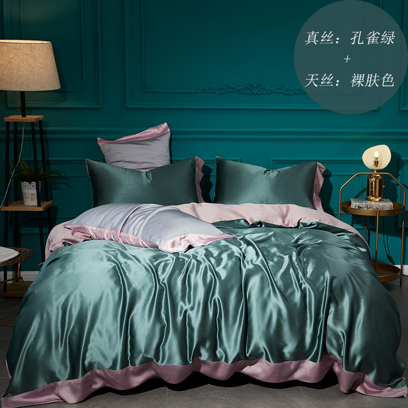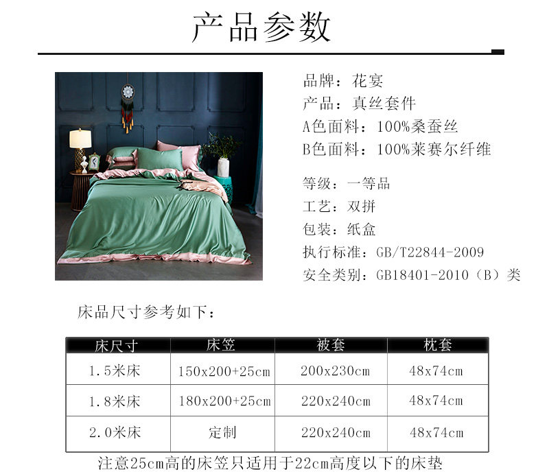 Особенности продукта: одна сторона наволочки и пододеяльника изготовлена из шелка, а другая - из тенселя; верх простыни выполнен из настоящего шелка, бока – из тенселя.Это гарантирует, что поверхность, прилегающая к коже, используемая клиентами, изготовлена из шелка, и снижает себестоимость комплектов из шелка, что делает продукт очень рентабельным.