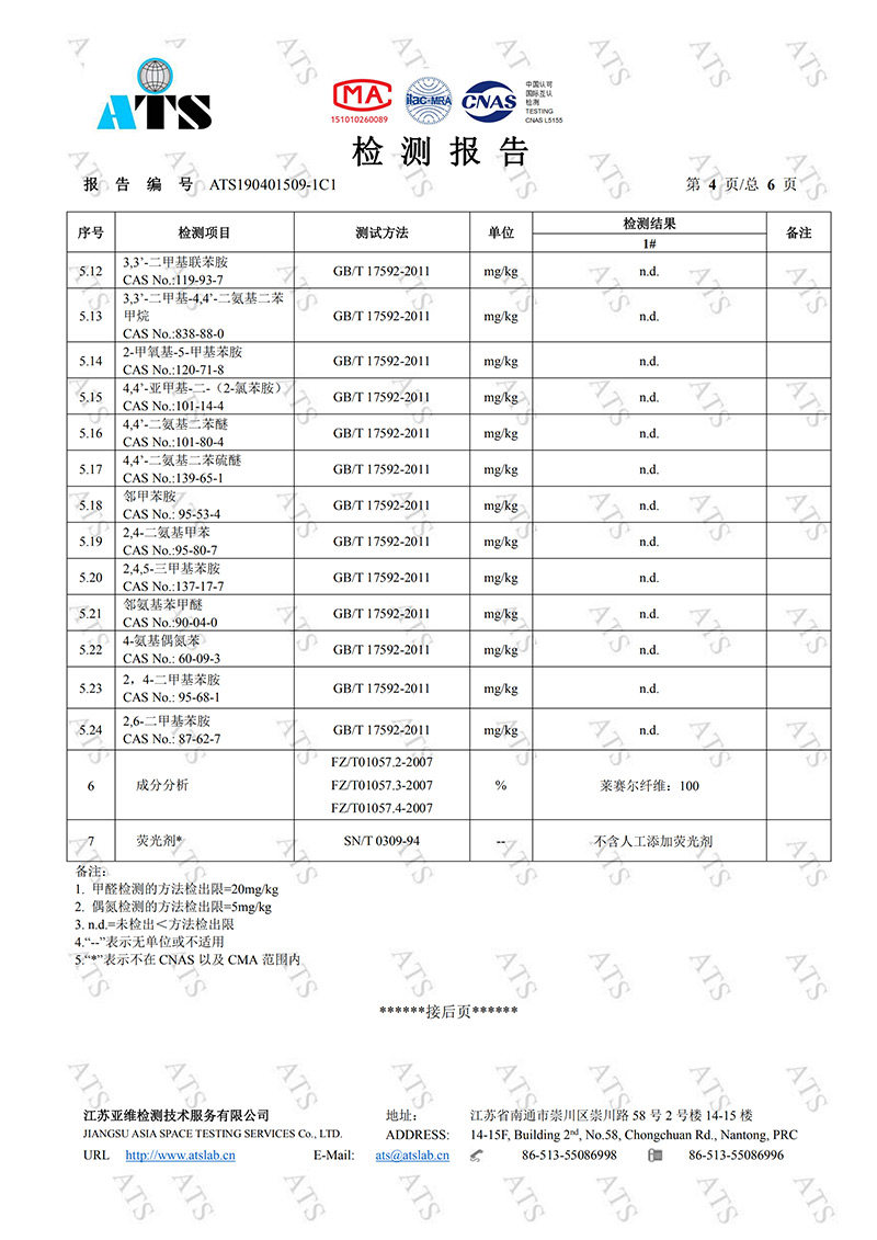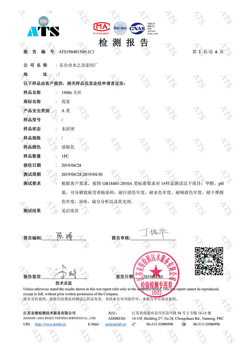 Отчет об испытаниях ткани Tencel выглядит следующим образом: