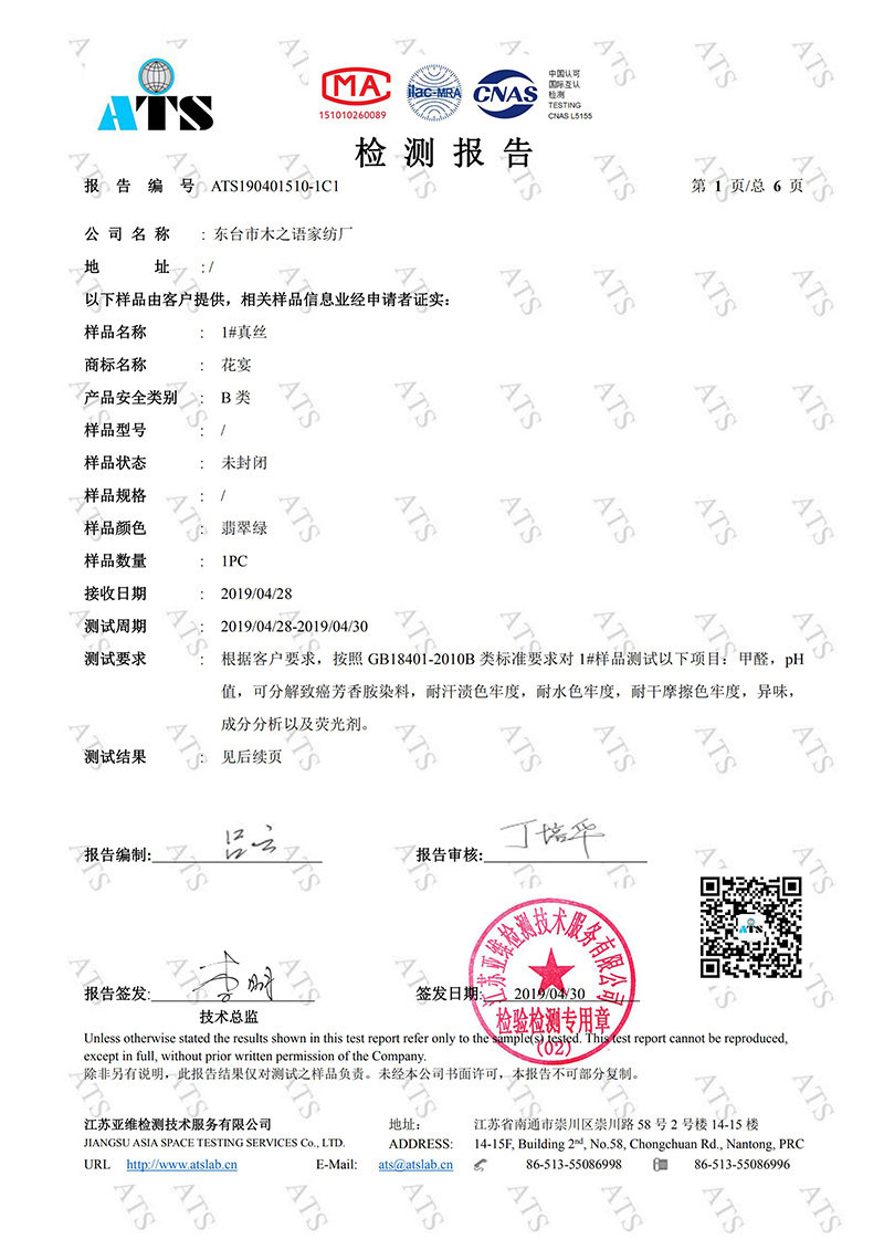 Протокол испытаний шелковой ткани следующий: