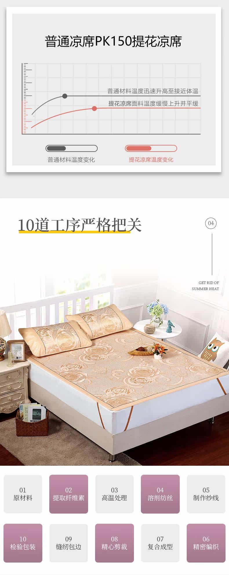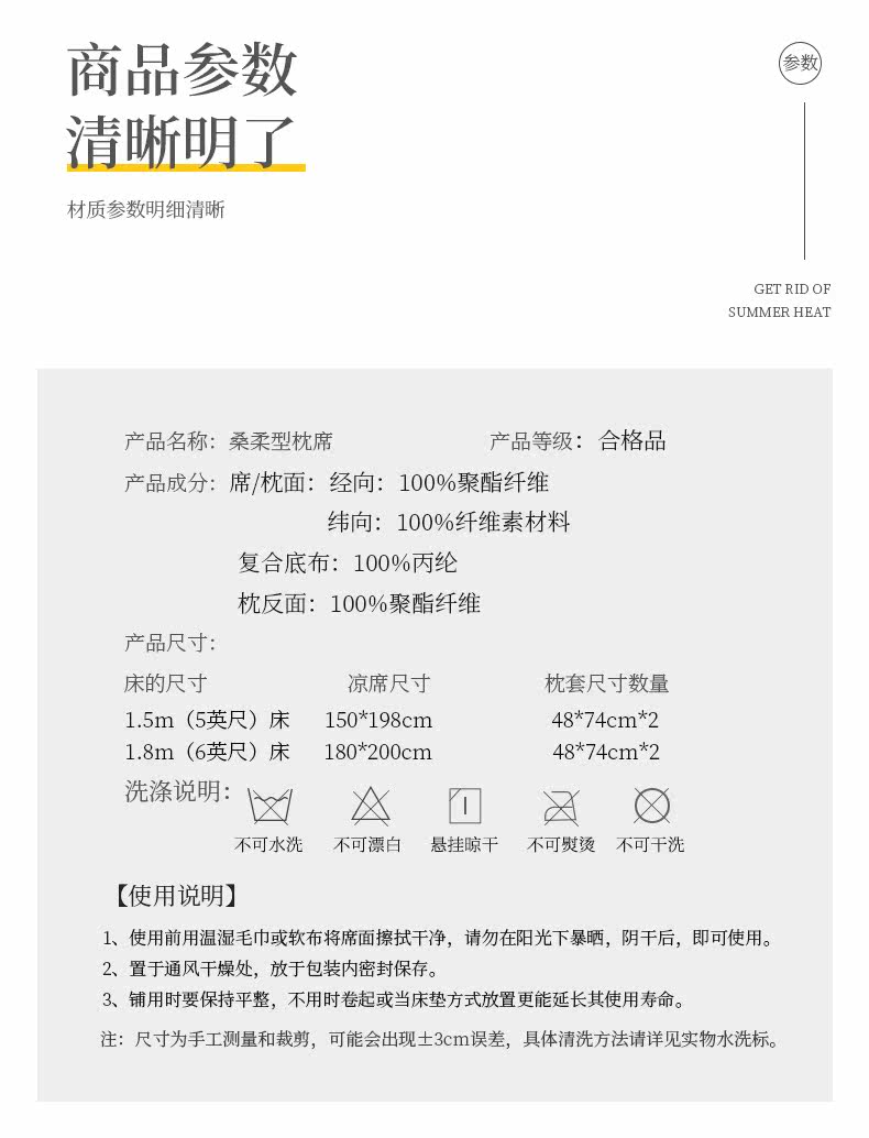 恒源祥 Шелковый коврик, складной летний комплект для школьников и студентов, 3 предмета, 1.5м