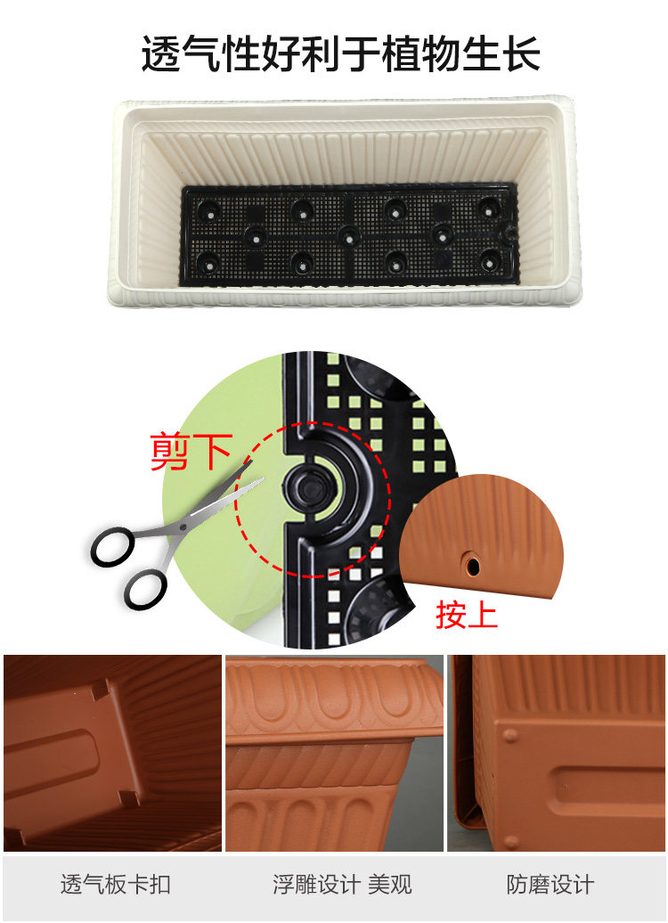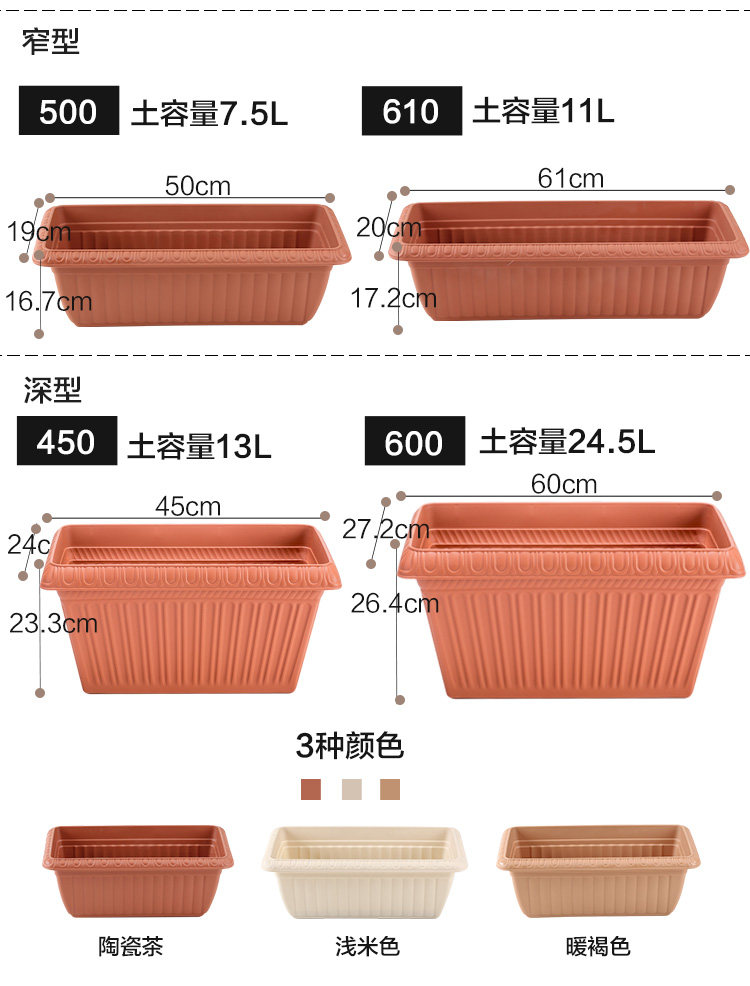 Керамический пластиковый большой прямоугольный цветочный горшок, увеличенная толщина
