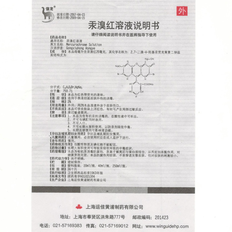信龙 Mryphory 2%*20 мл/бутылка подходит для дезинфекции ртутного брома красным с поверхностной травмой кожи