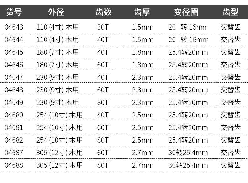 | Цвет: | [30 зубьев по дереву] 04643, [40 зубьев по дереву] 04644, [40 зубьев по дереву] 04645, [60 зубьев по дереву] 04646, [40 зубьев по дереву] 04647, [60 зубьев по дереву] 04648, [80 зубьев по дереву] 04649, [40 зубьев по дереву] 04680, [60 зубьев по дереву] 04681, [80 зубьев по дереву] 04682, [100 зубьев для алюминия] 04683, [120 зубьев для алюминия] 04684, [100 зубьев для фанеры] 04685, [120 зубьев для фанеры] 04686, [60 зубьев по дереву] 04687, [80 зубьев по дереву] 04688, [120 зубьев для алюминия] 04689 |