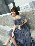 Блестящее вечернее платье, 2020, яркий броский стиль, открытые плечи