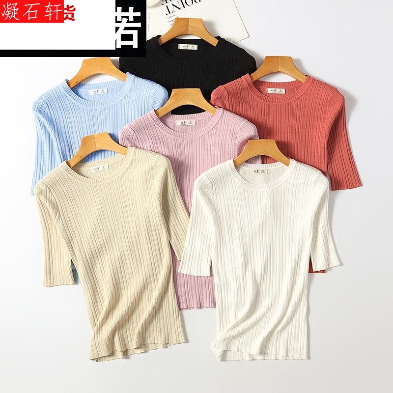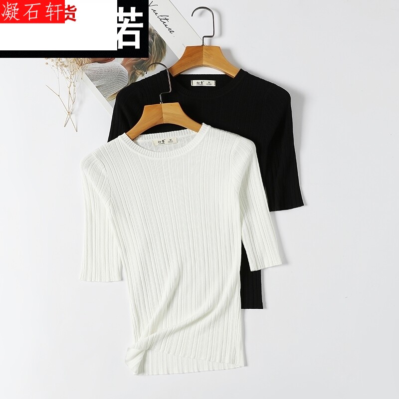 Весенний трикотажный белый свитер, цветная тонкая черная базовая приятная телу футболка, облегающий крой, в обтяжку