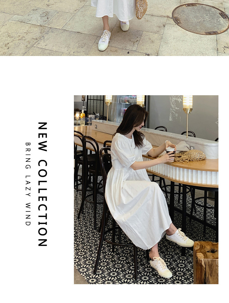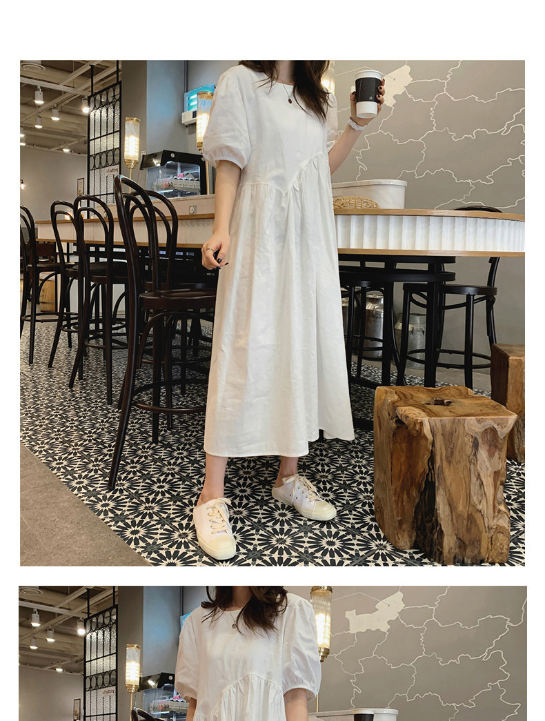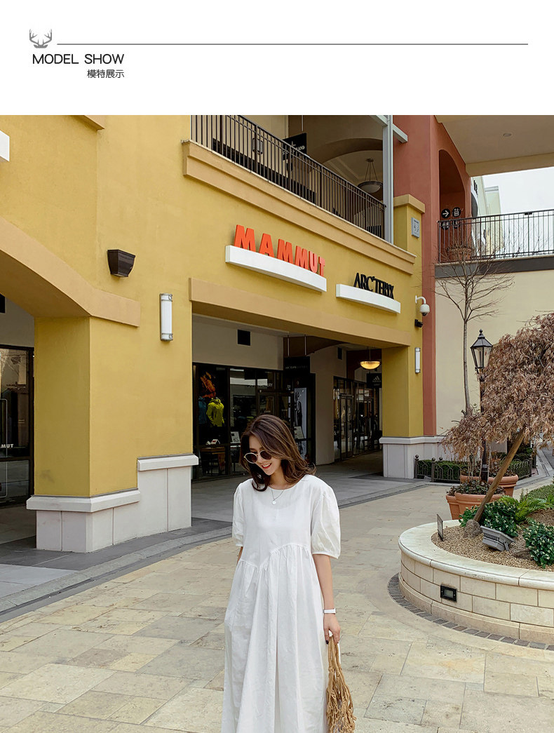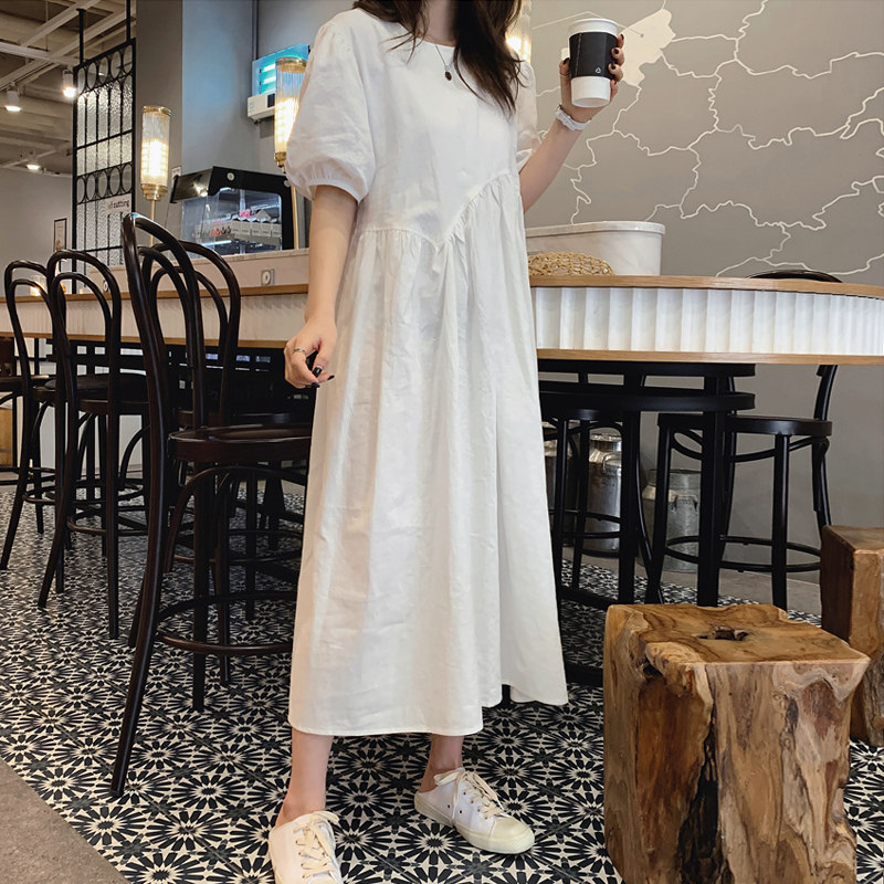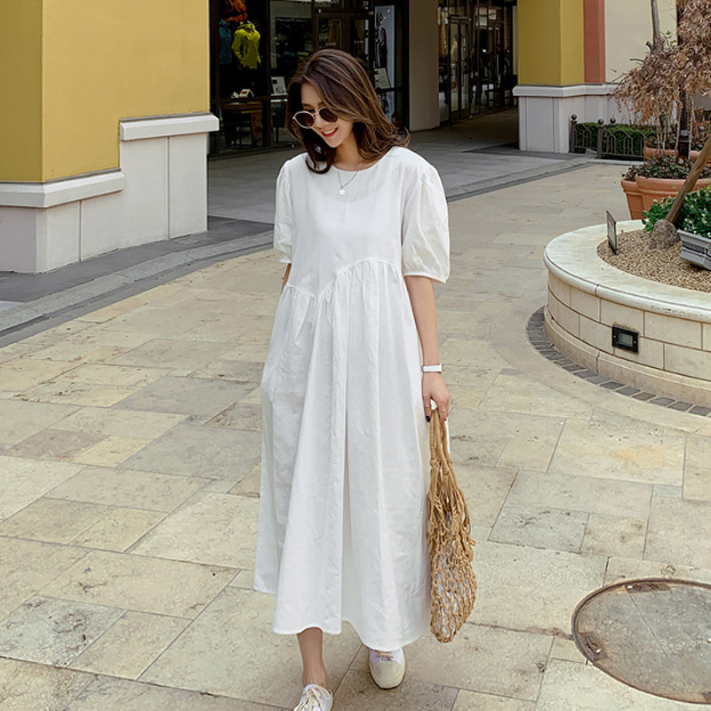 Белое платье, летняя длинная юбка, высокая талия, А-силуэт, короткий рукав