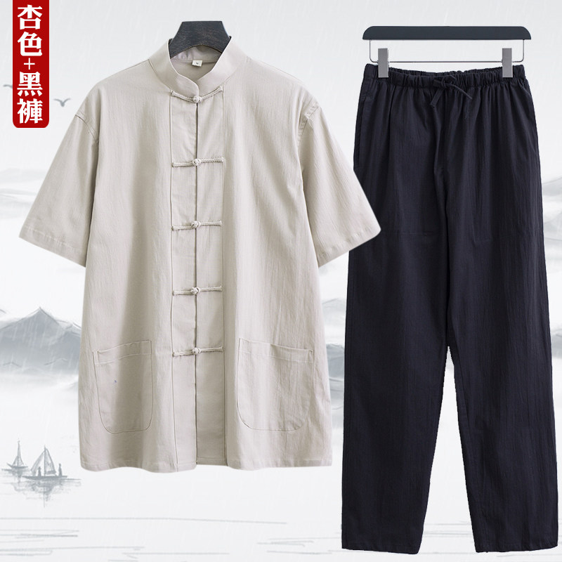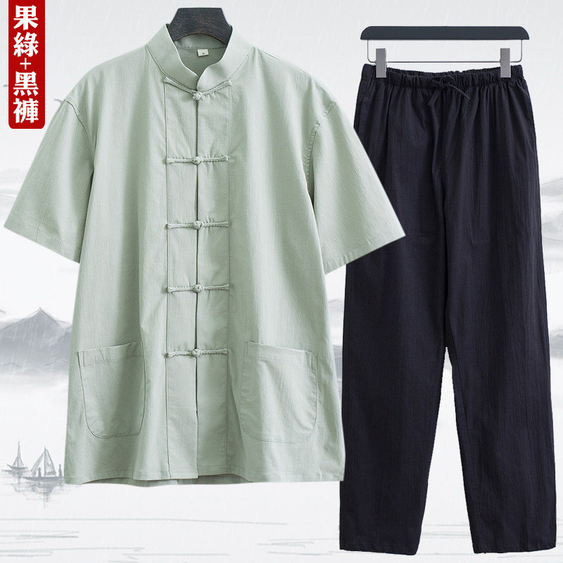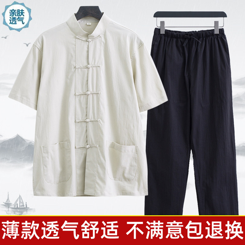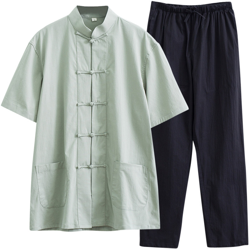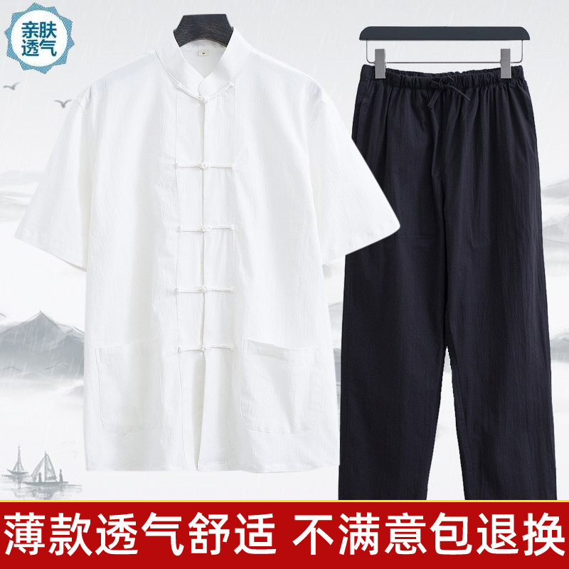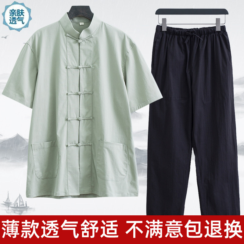 Тонкий летний костюм для пожилых людей, ретро ханьфу, короткий рукав, с рукавом, китайский стиль, для среднего возраста