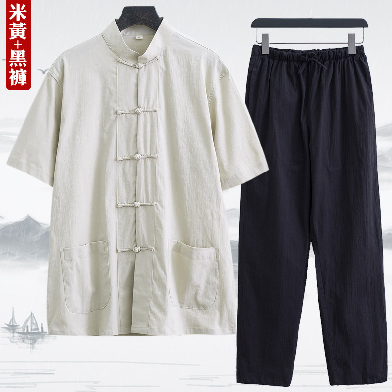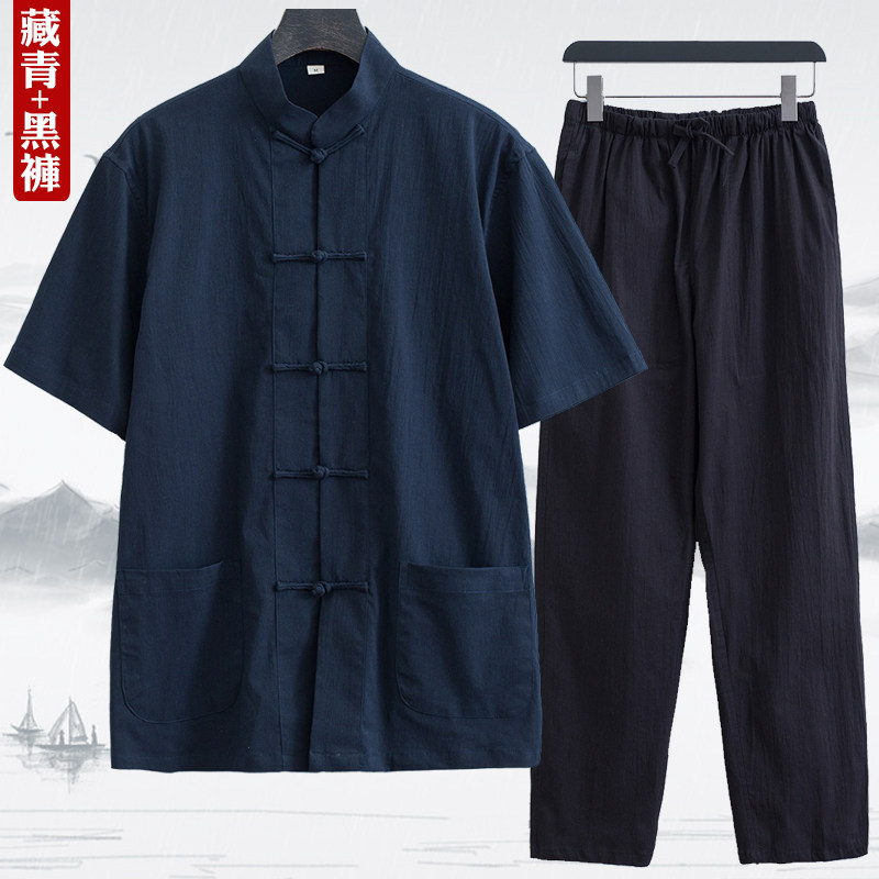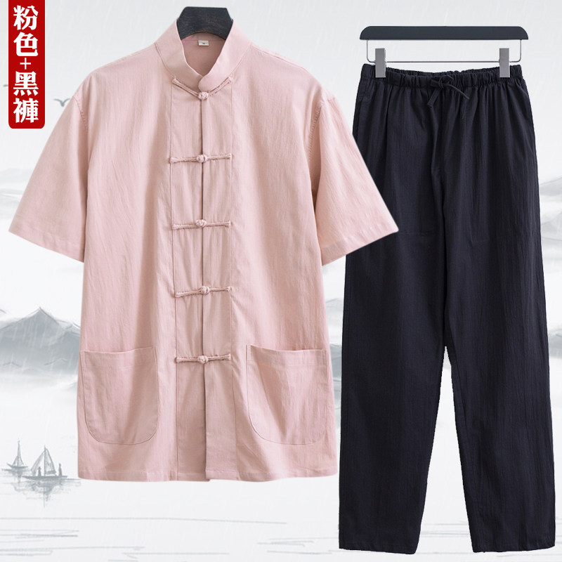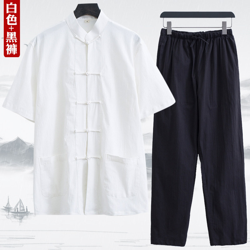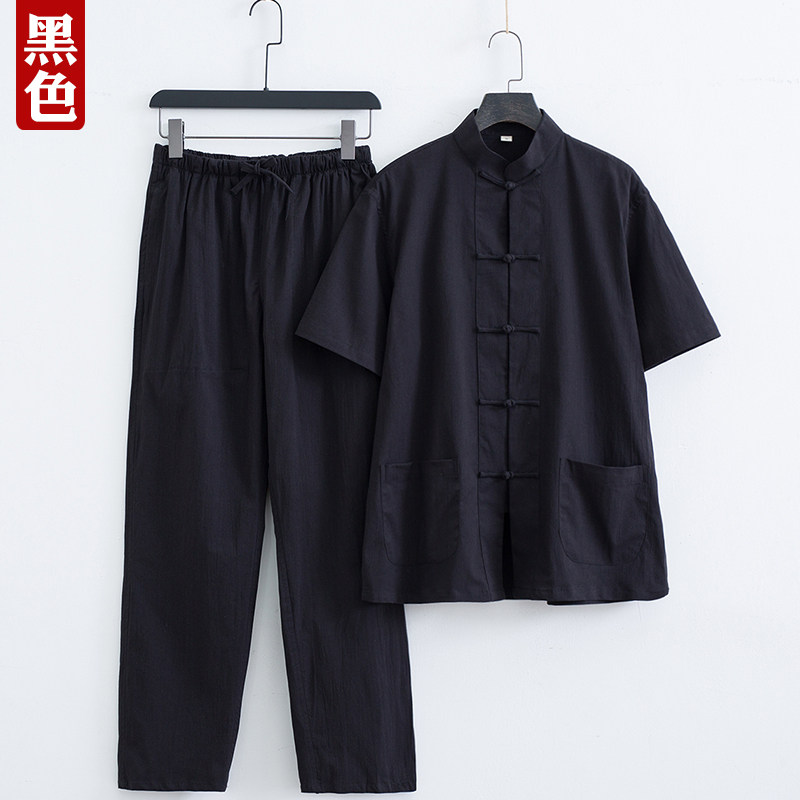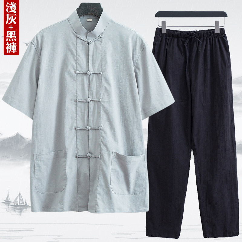 Тонкий летний костюм для пожилых людей, ретро ханьфу, короткий рукав, с рукавом, китайский стиль, для среднего возраста