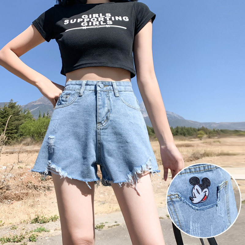 Tide, джинсовая юбка, шорты, летние штаны, большой размер, высокая талия, коллекция 2021, свободный крой, А-силуэт