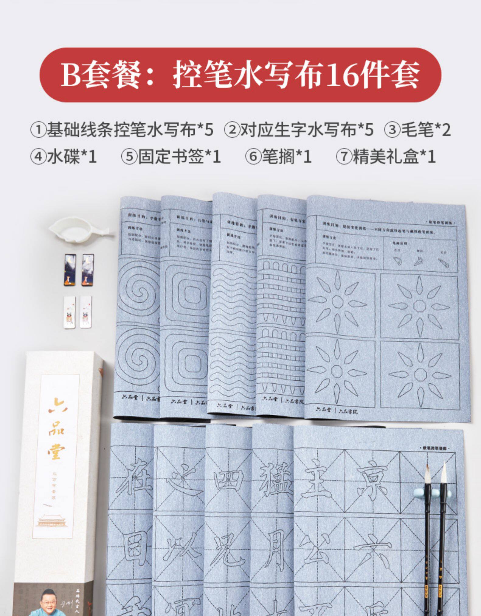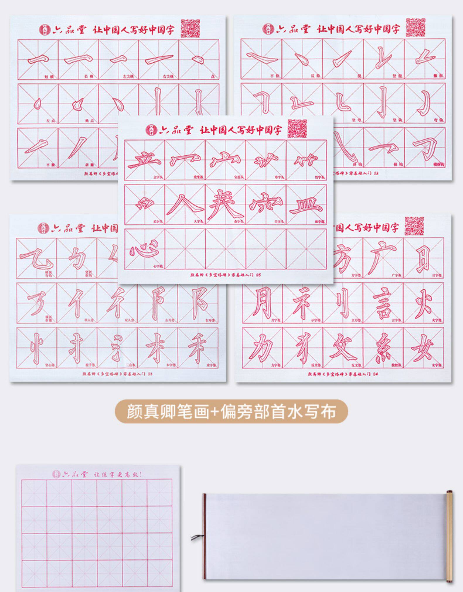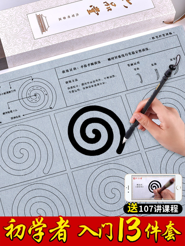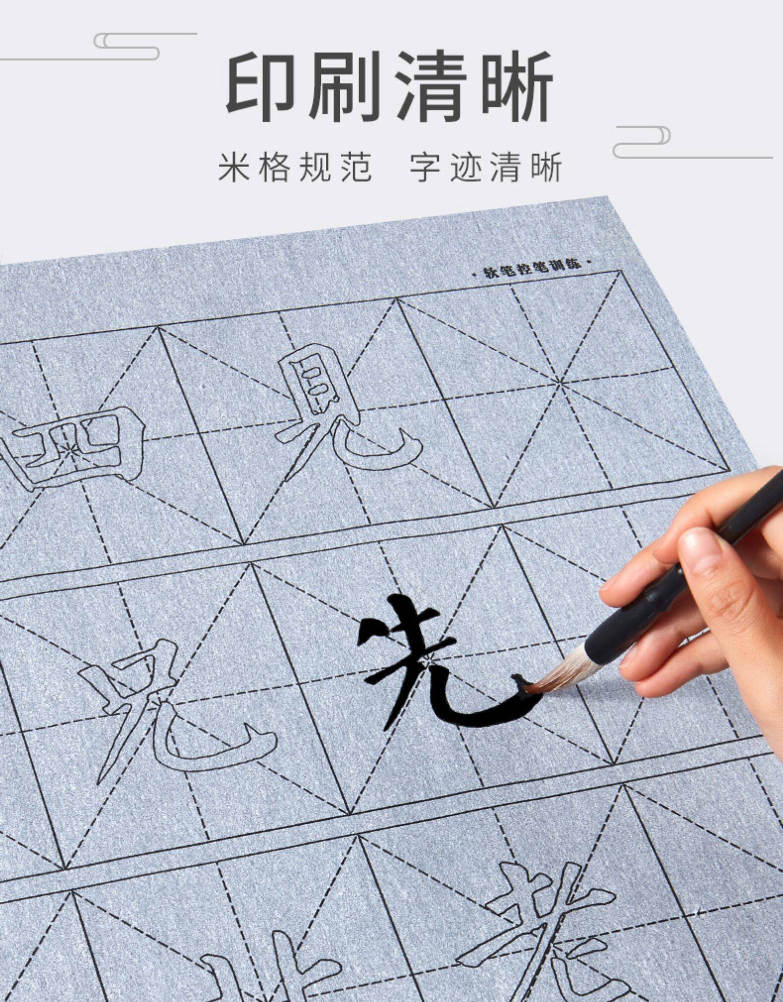 六品堂 Кисть для письма, комплект для тренировок для начинающих, тетрадь, каллиграфия, книга из ткани, быстросохнущая бумага для каллиграфии, детская практика для школьников и студентов, увеличенная толщина