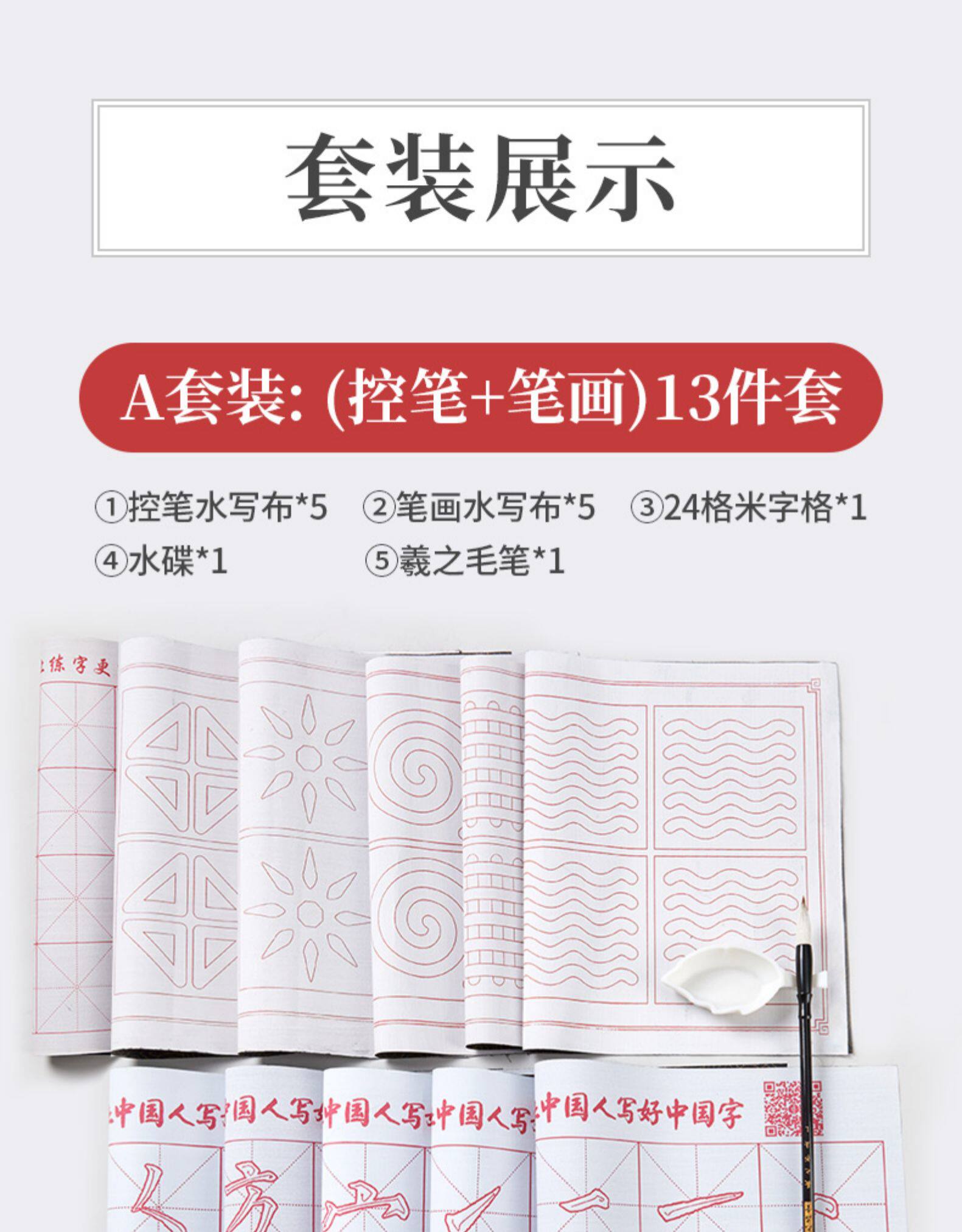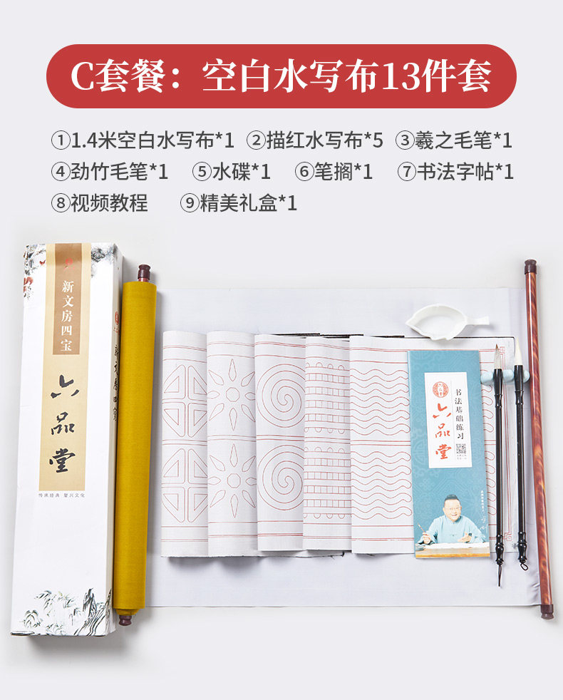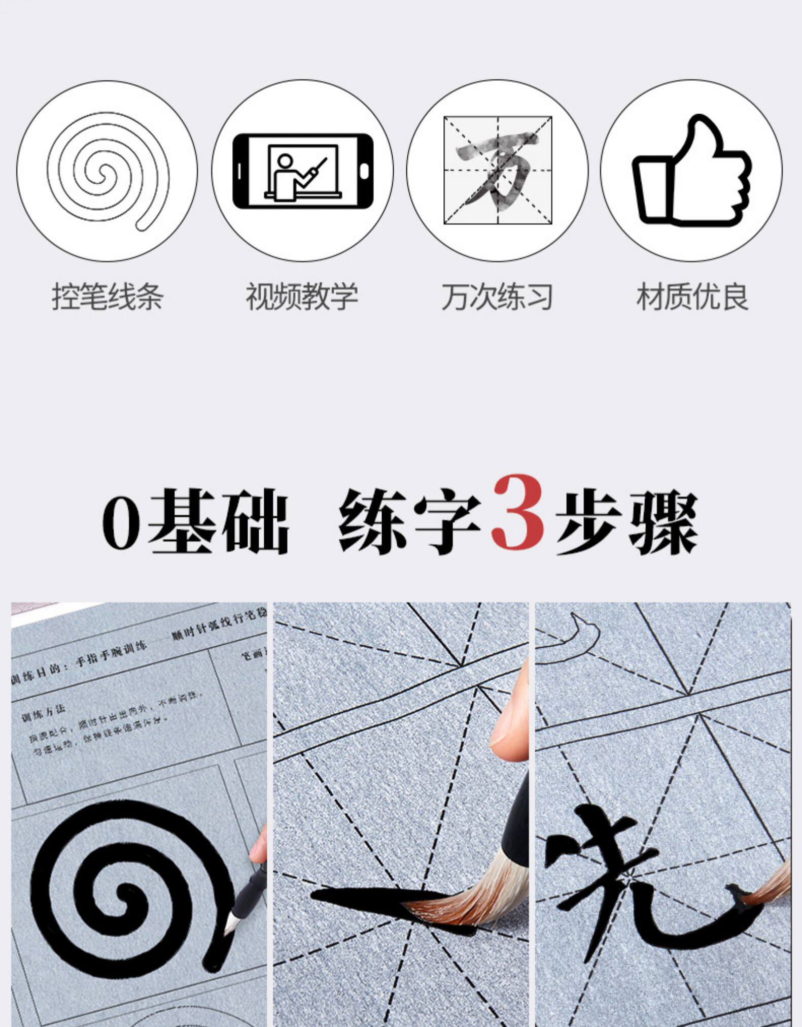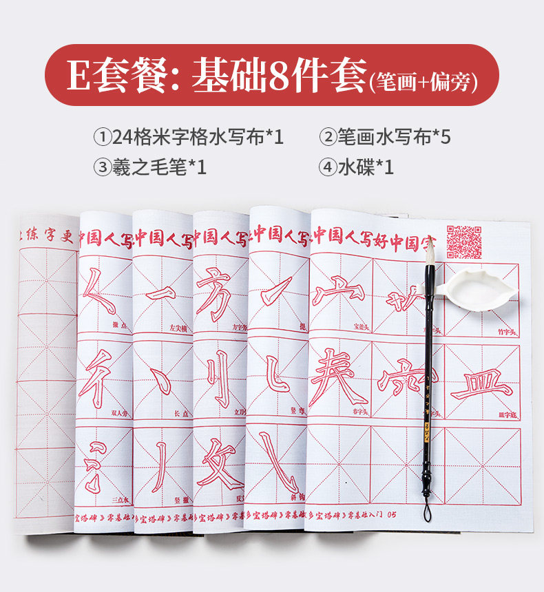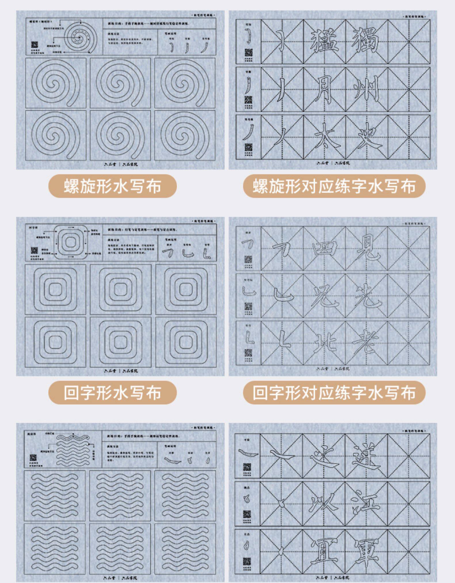 六品堂 Кисть для письма, комплект для тренировок для начинающих, тетрадь, каллиграфия, книга из ткани, быстросохнущая бумага для каллиграфии, детская практика для школьников и студентов, увеличенная толщина