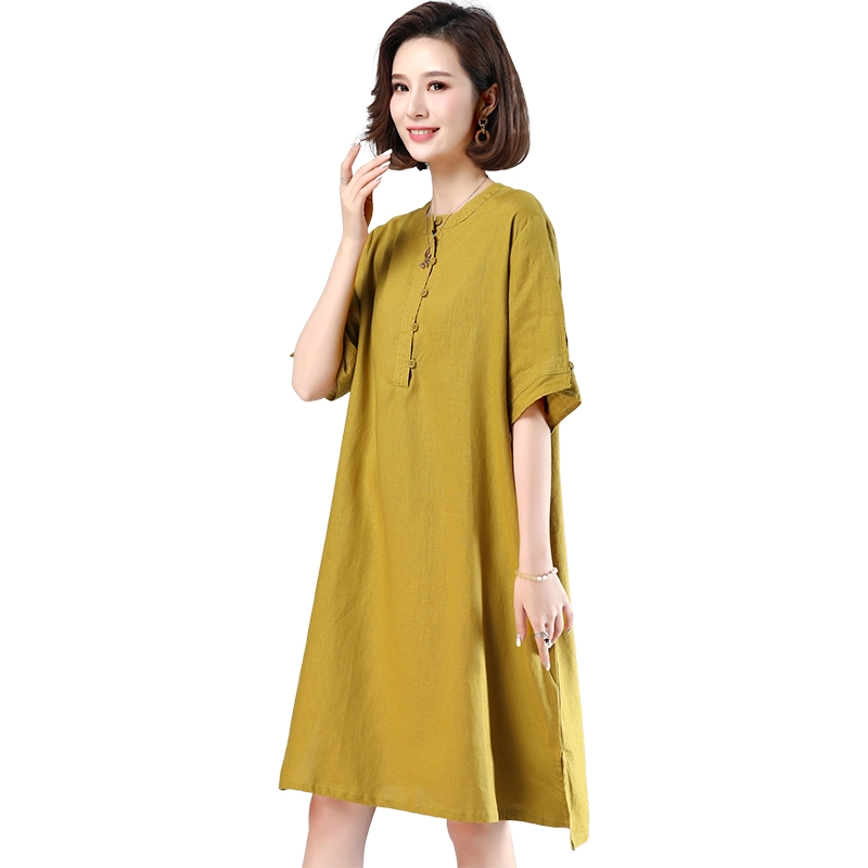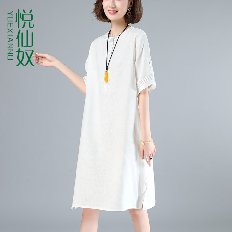 Длинное летнее платье, из хлопка и льна, средней длины, 2020 года, в корейском стиле, А-силуэт