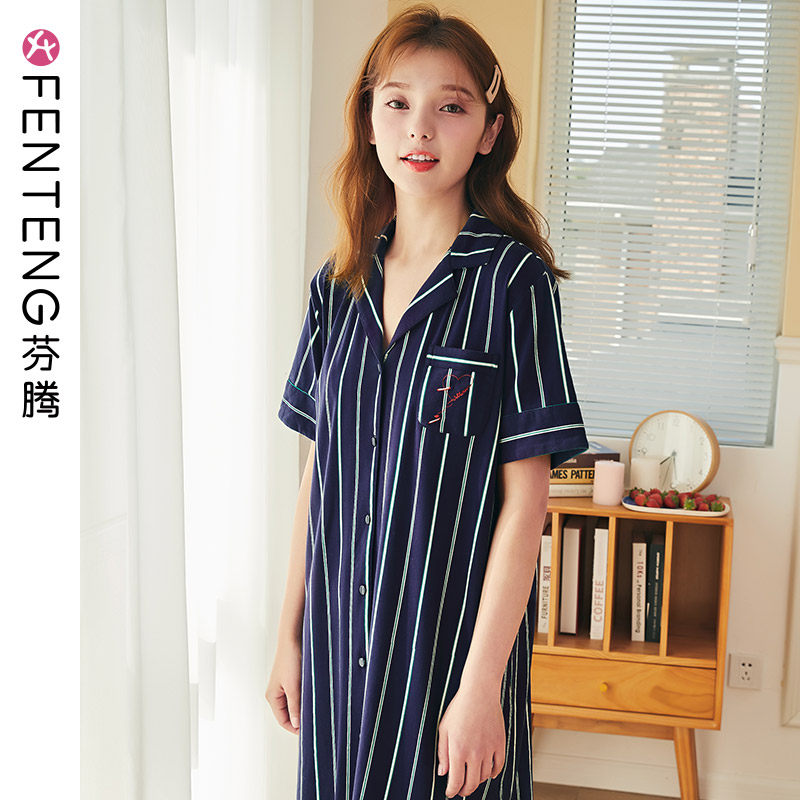 芬腾 Хлопковая пижама, юбка, длинный тонкий летний кардиган, платье, короткий рукав, с рукавом