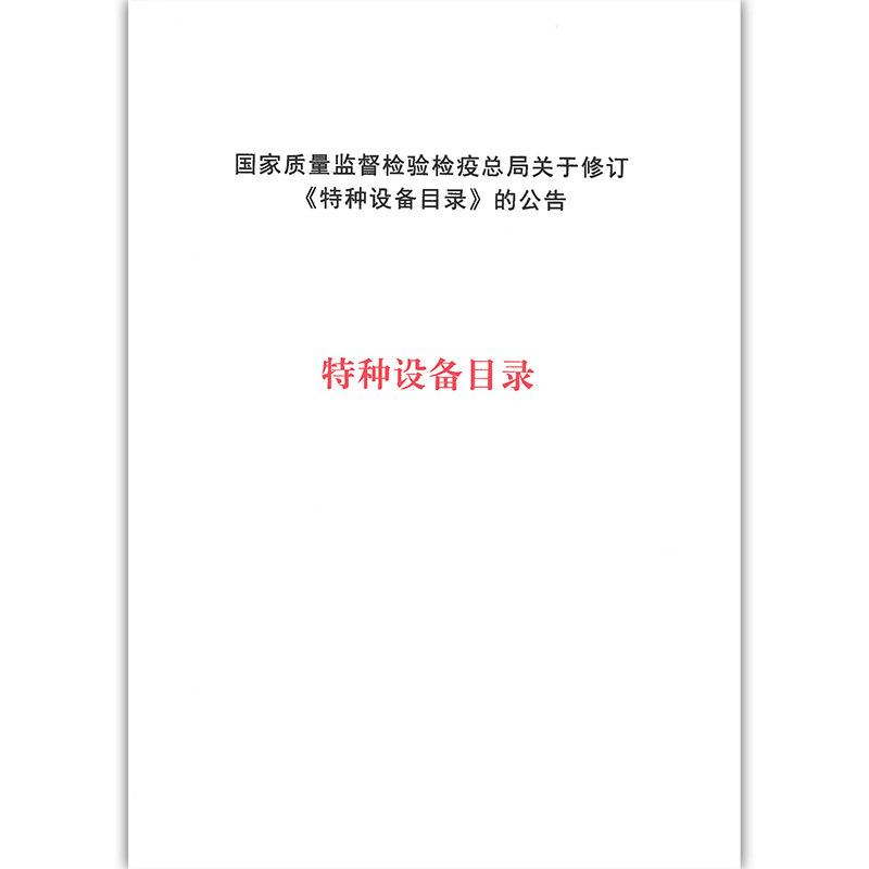 Построить рекуКаталог специального оборудования (издание 2014 г.) был анонсирован и введен в действие 30 октября 2014 г. после его пересмотра Главным управлением по надзору за качеством, инспекции и карантина и утверждения Госсоветом в соответствии с положениями «Закона о безопасности специального оборудования Китайской Народной Республики» и «Правил надзора за безопасностью специального оборудования».Ниже представлено основное содержимое каталога:
