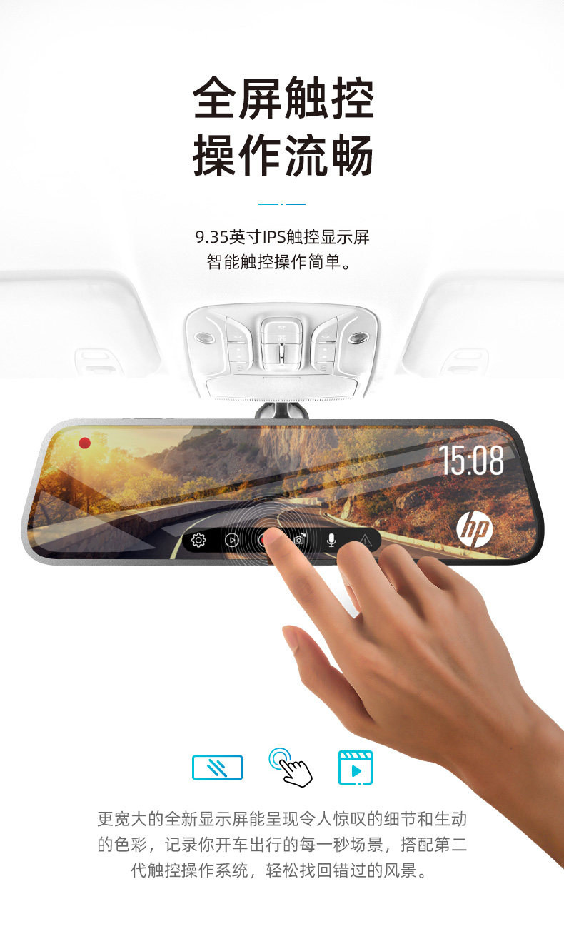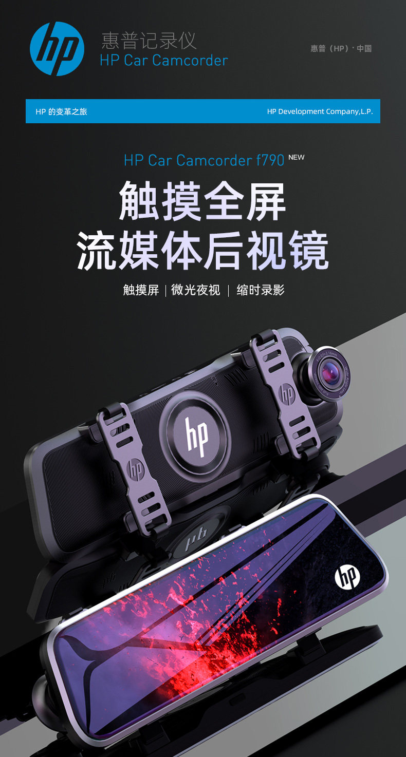 HP Driving Recorder Double -Escreen Full -Escreen Full -Escreen Touch HD Night Vision Media с обратным изображением All -In -One Machine