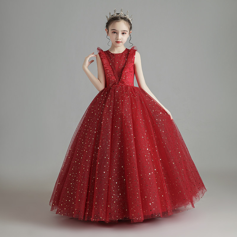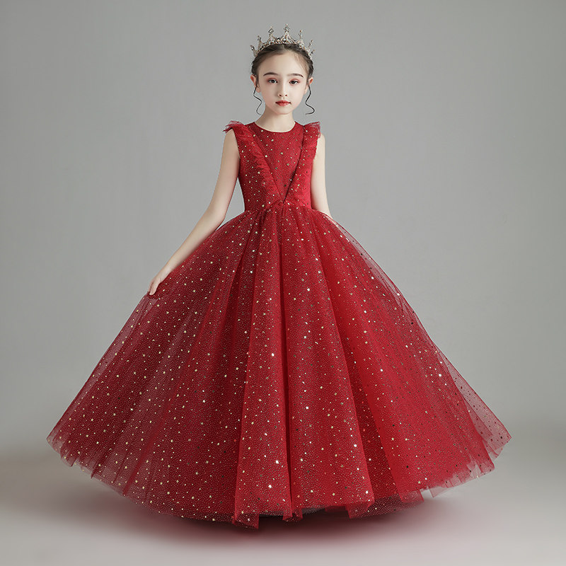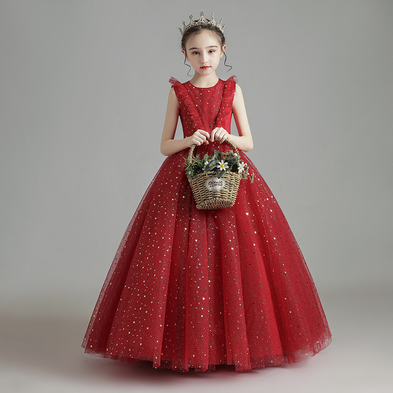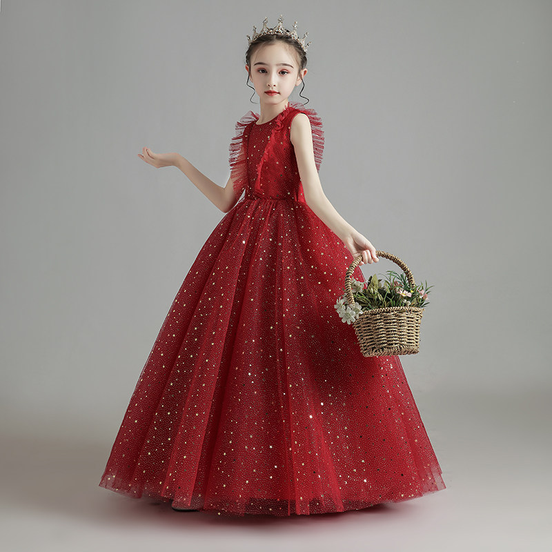 Красный детский элитный наряд маленькой принцессы, свадебное платье, юбка, в западном стиле