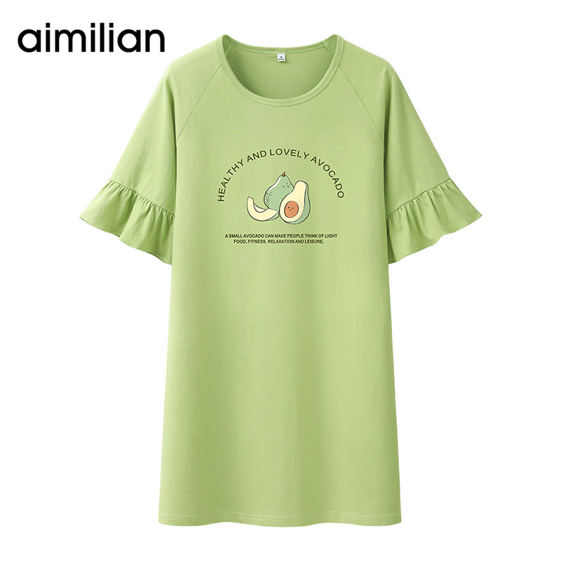 艾米恋 Хлопковая летняя пижама, тонкая юбка, мини-юбка, футболка, платье с коротким рукавом, оверсайз