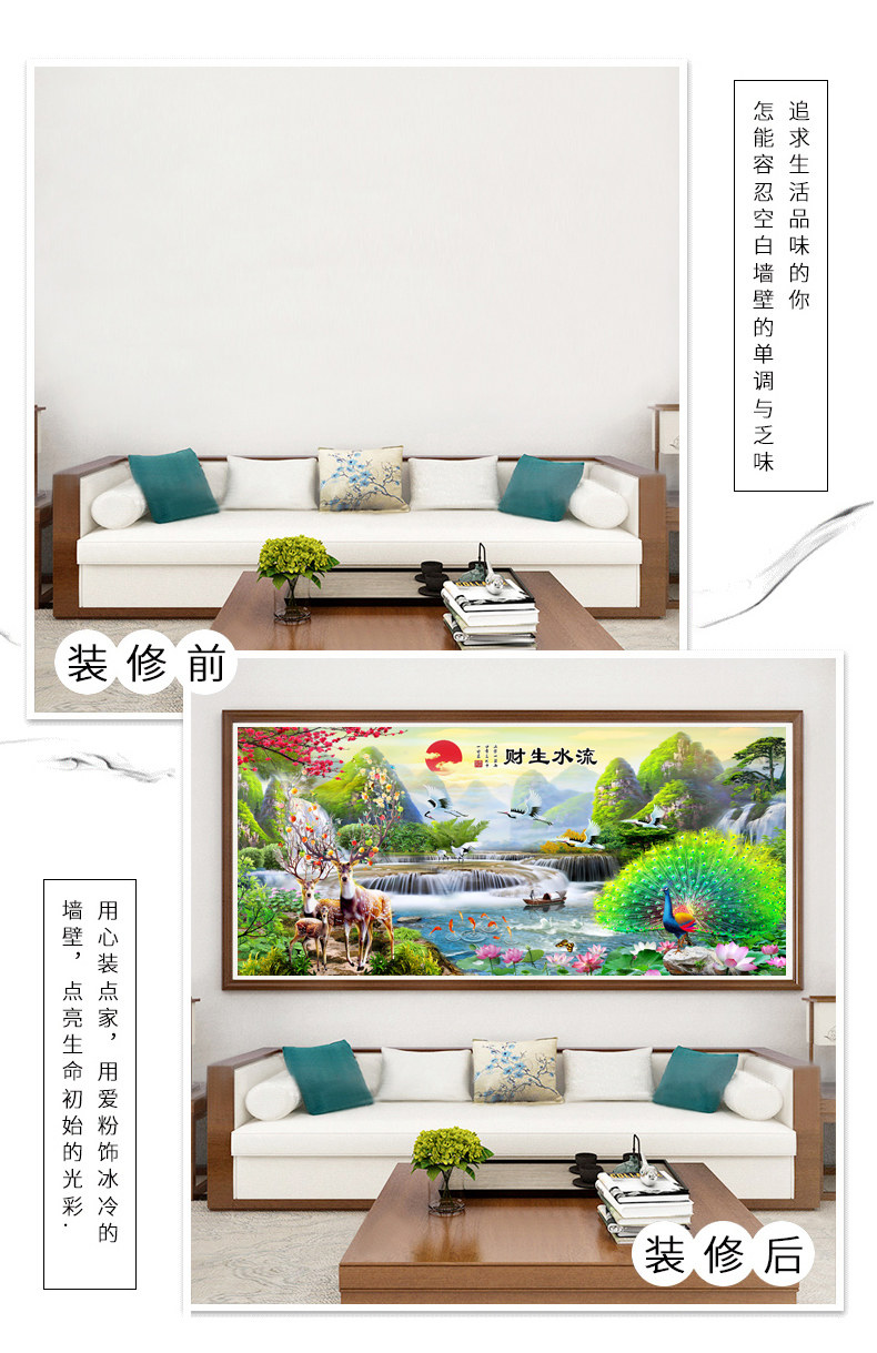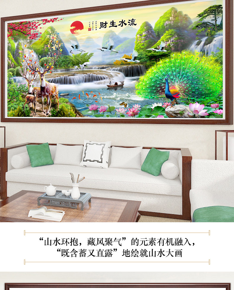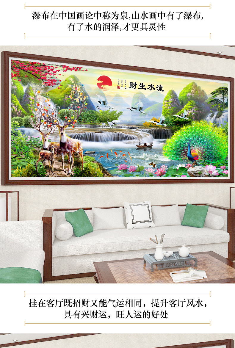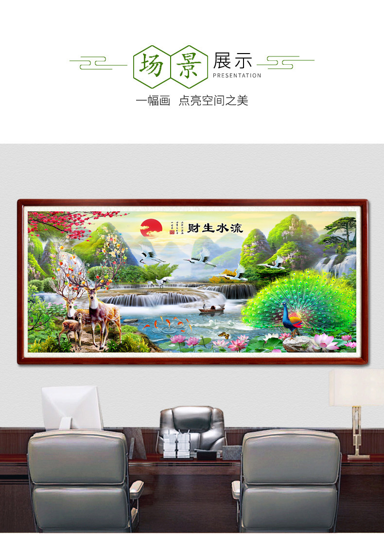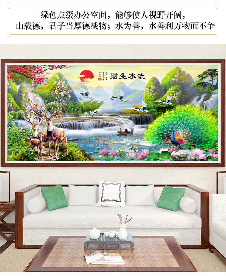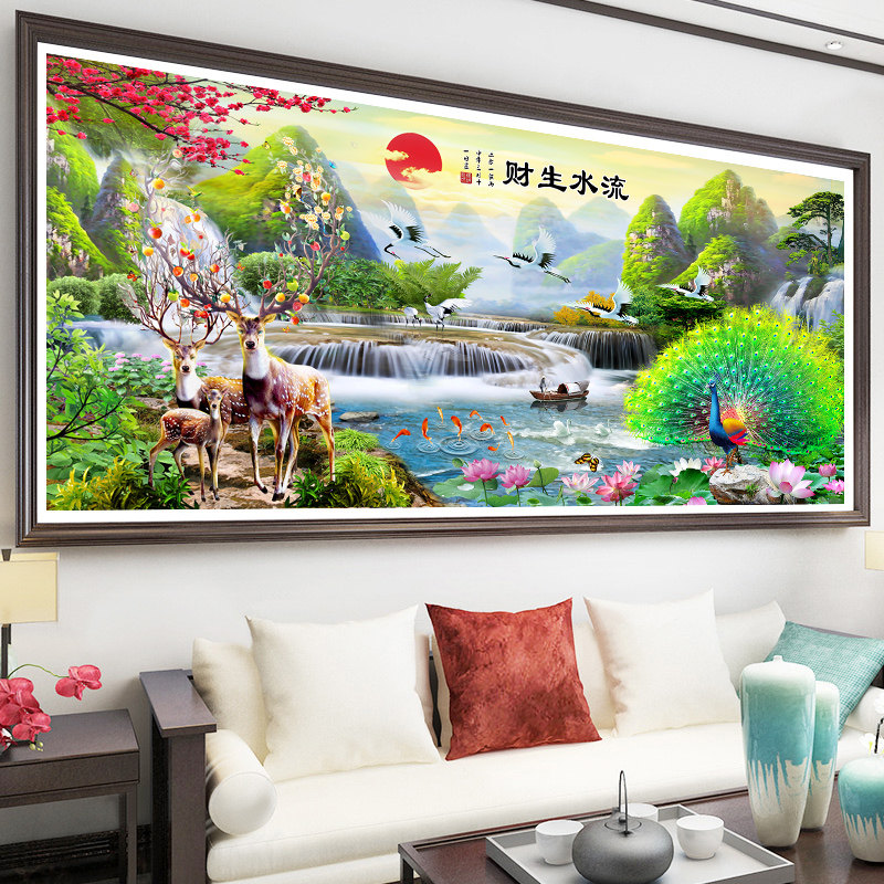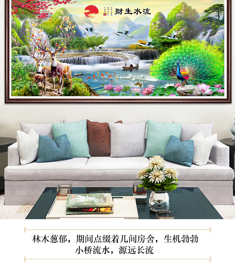 5d алмазная живопись 2021 новая гостиная пейзажная живопись вышивка крестиком текущая вода делает богатство павлин олень точка паста алмазная вышивка
