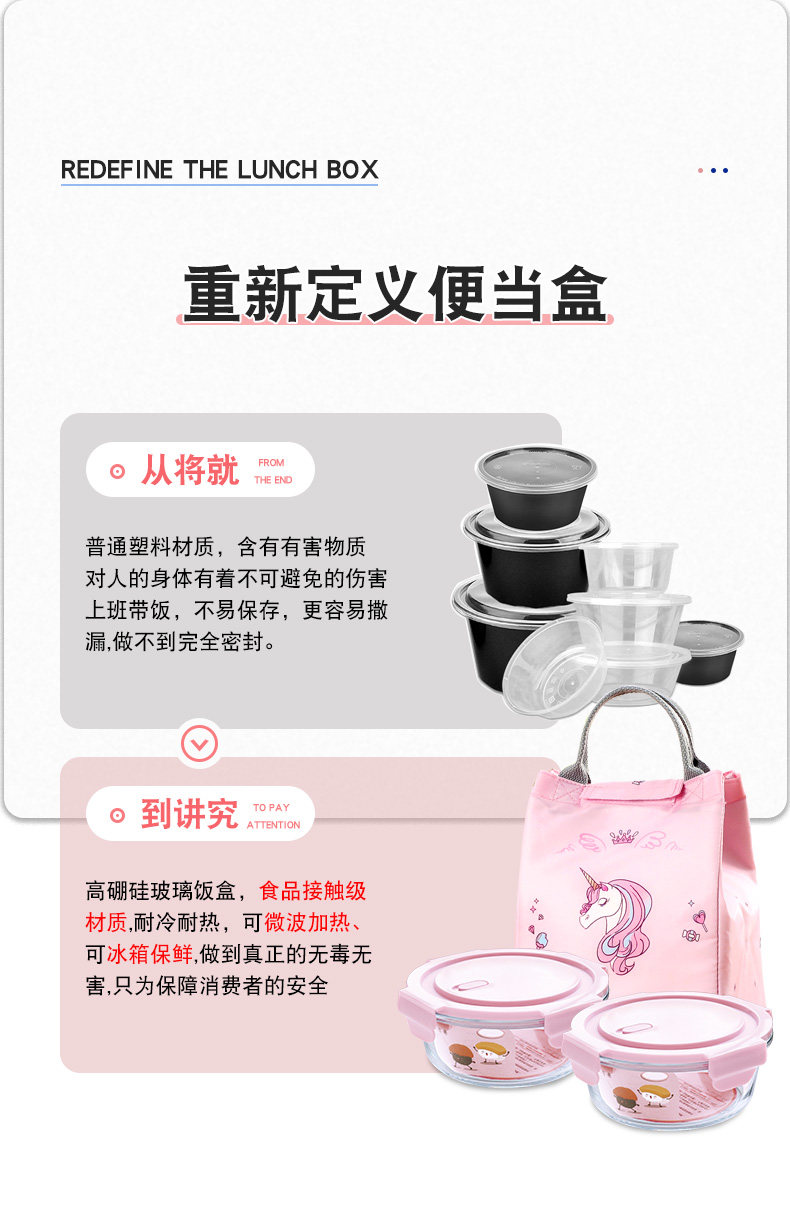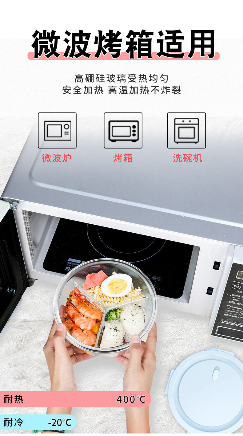Офисные работники могут обогревать микроволновую печь. Отобление Специальная стеклянная ланч -бокс -холодильник Свежая коробка для ланч -коробки с круглой формой