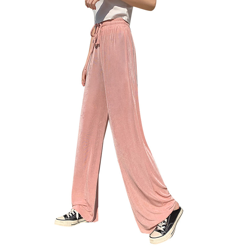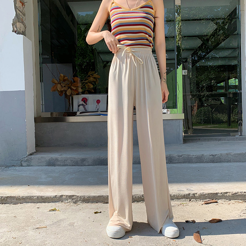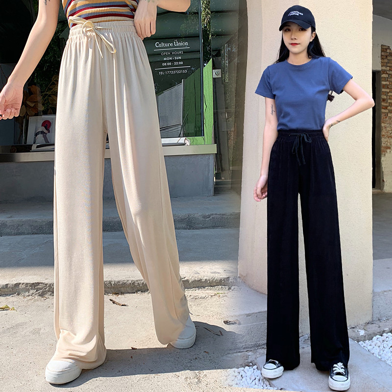 Шелковые осенние черные штаны, летние тонкие повседневные брюки, высокая талия, свободный прямой крой