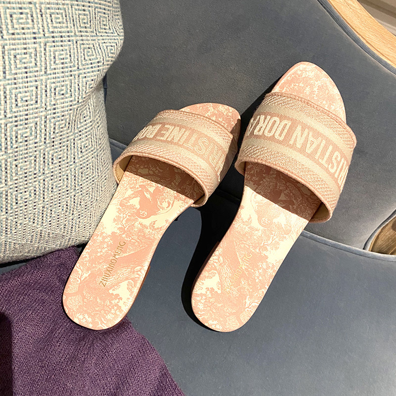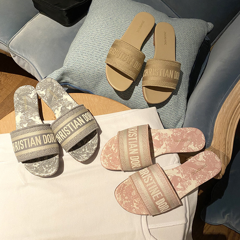 Плетеные тапочки, летняя универсальная обувь, слайдеры на плоской подошве, коллекция 2021, с вышивкой