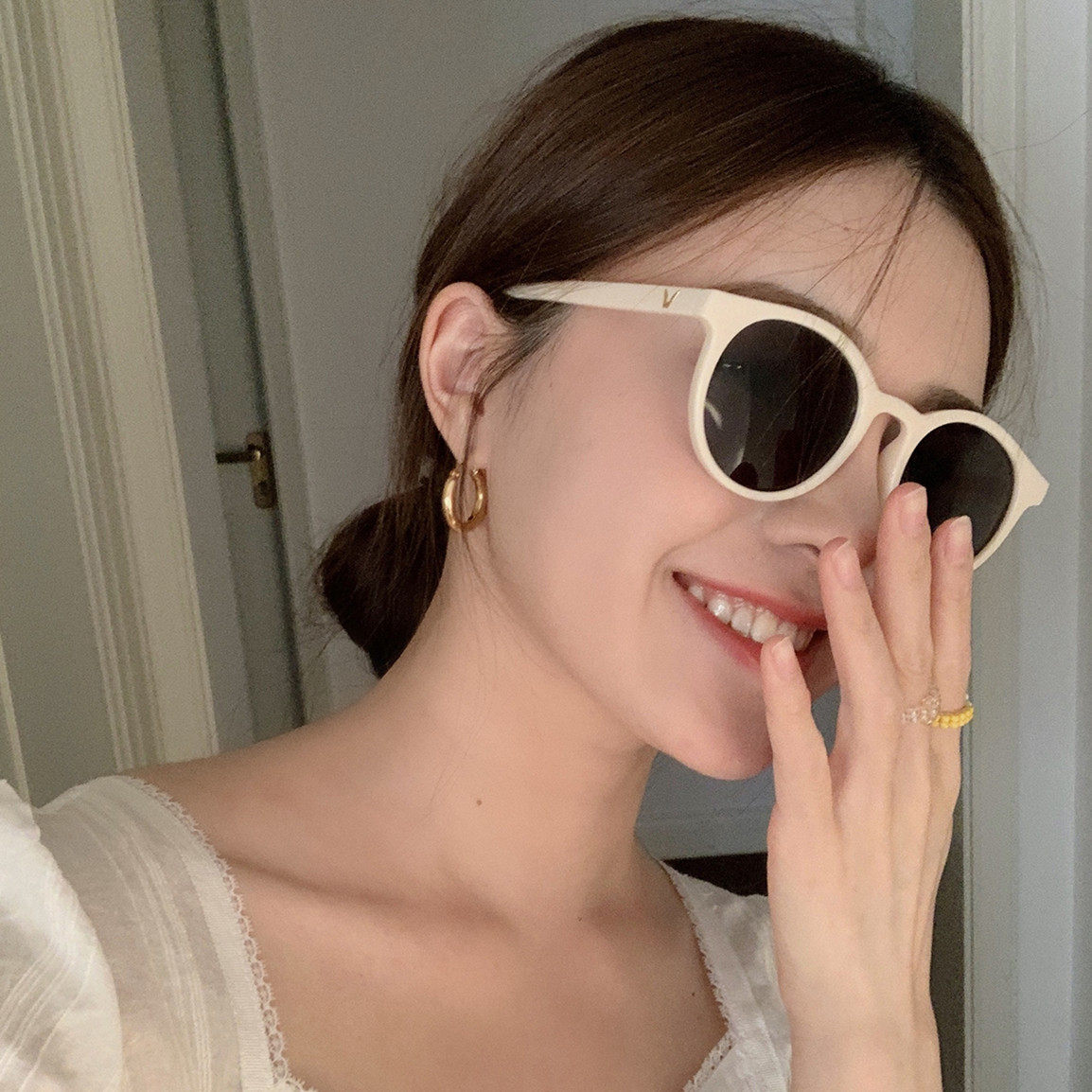 Белые брендовые солнцезащитные очки, в корейском стиле, изысканный стиль, защита от ультрафиолета