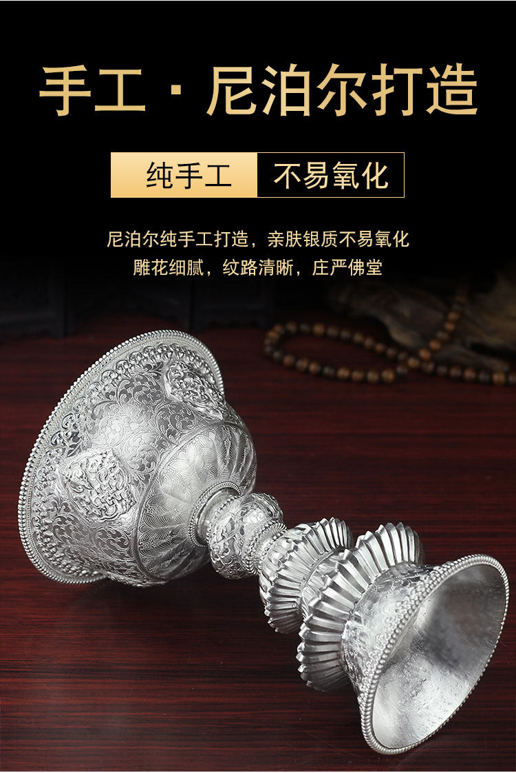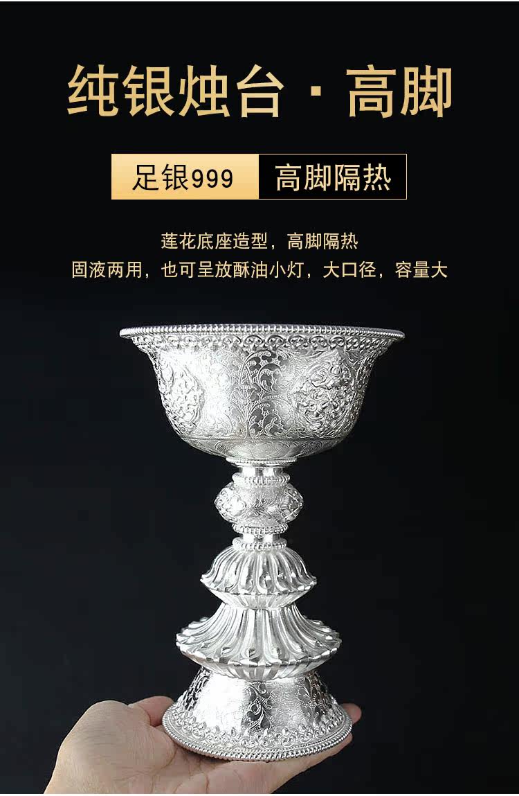 Непальская стерлинговое серебро 999 держатель масла для жилья для дома лотос для будды подсвечника подсвечника длинный светлый свет жидкий призрачный лампа