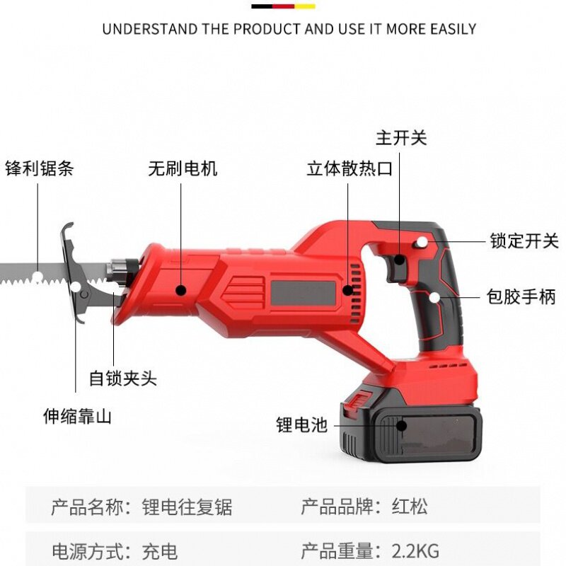 Бесколлекторная перезаряжаемая бензопила, литиевые батарейки, портативная электрическая лопасть, Германия, высокая мощность