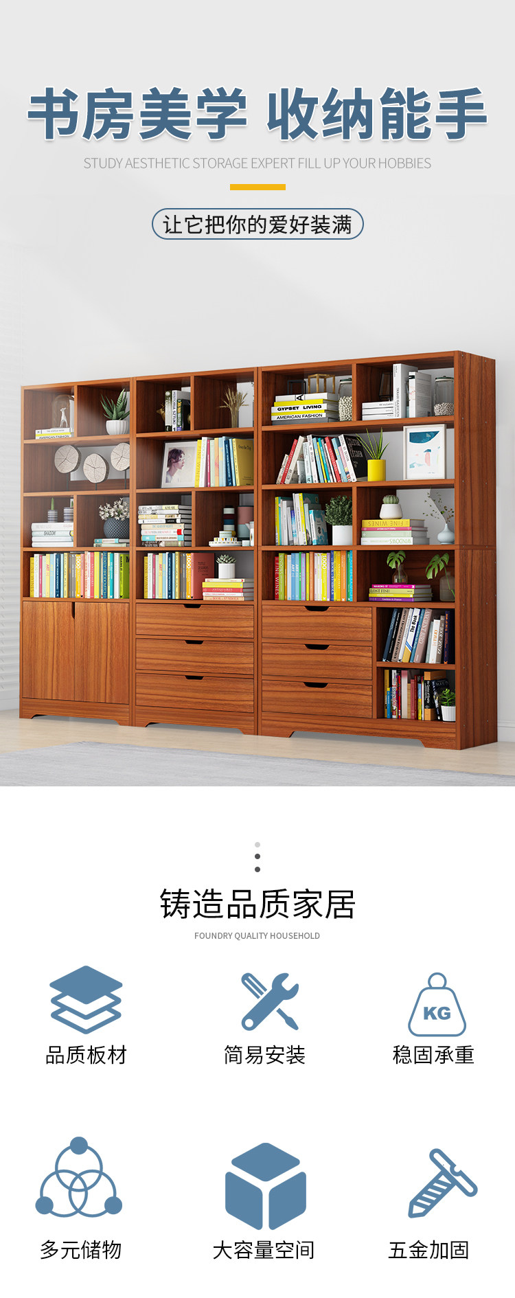 Книжный шкаф, книжная полка для школьников, простая система хранения из натурального дерева