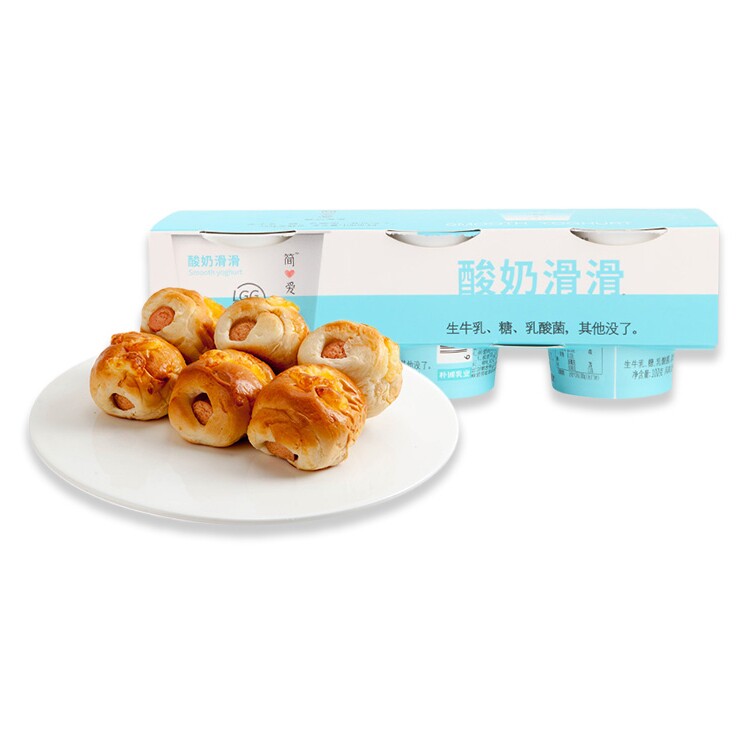 [Завтрак на двоих] Хлеб с сыром и колбасой, йогурт Джейн Эйр, гладкий, 100 г*3