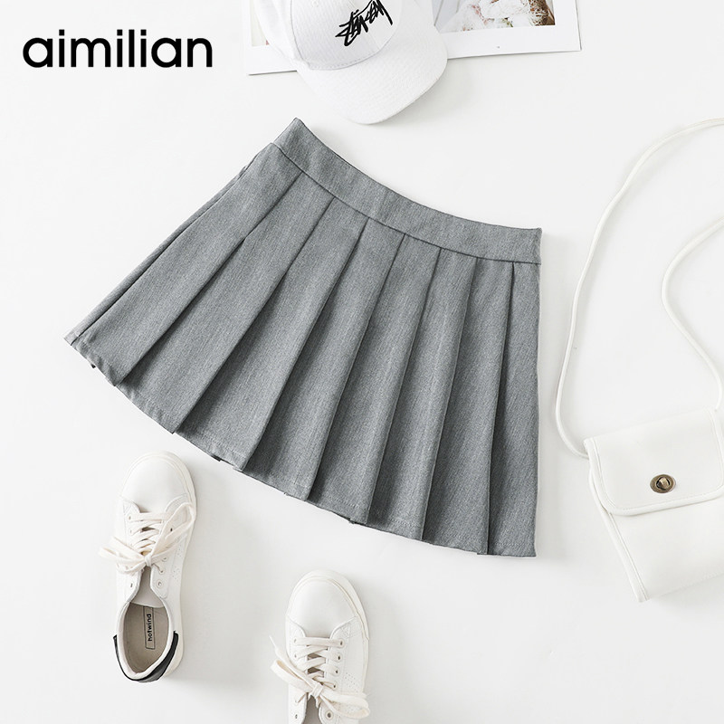 艾米恋 Черная мини-юбка для школьников, короткая юбка в складку, высокая талия