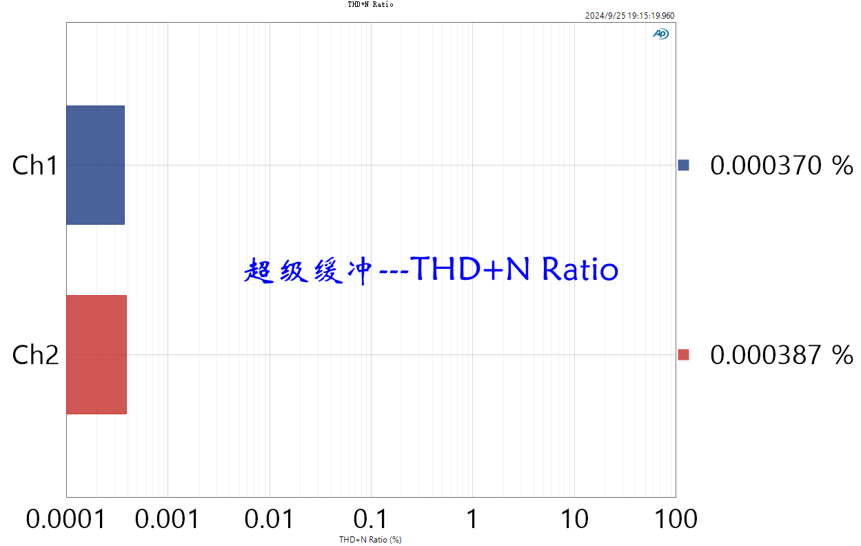 Действительно супербуферизация: Со сверхнизким уровнем шума, сверхвысоким соотношением сигнал/шум и сверхнизкими искажениями. Фактическое измерение AP смотрите позже.